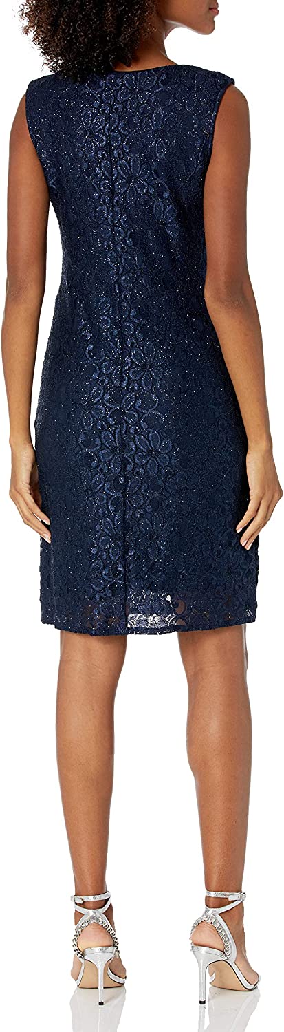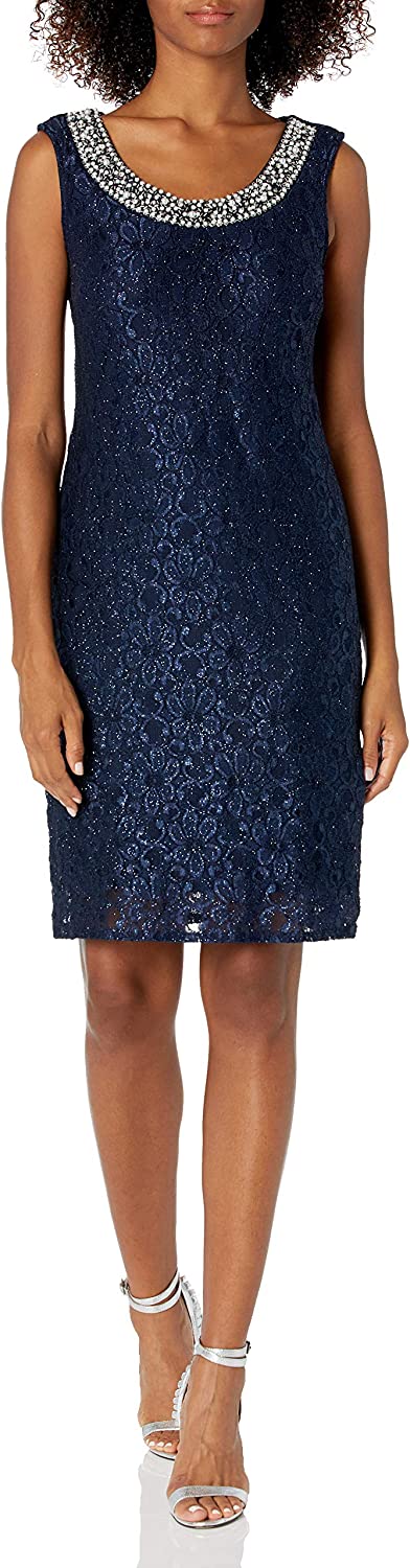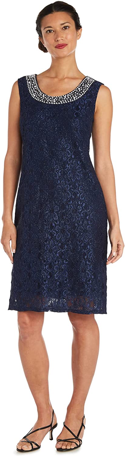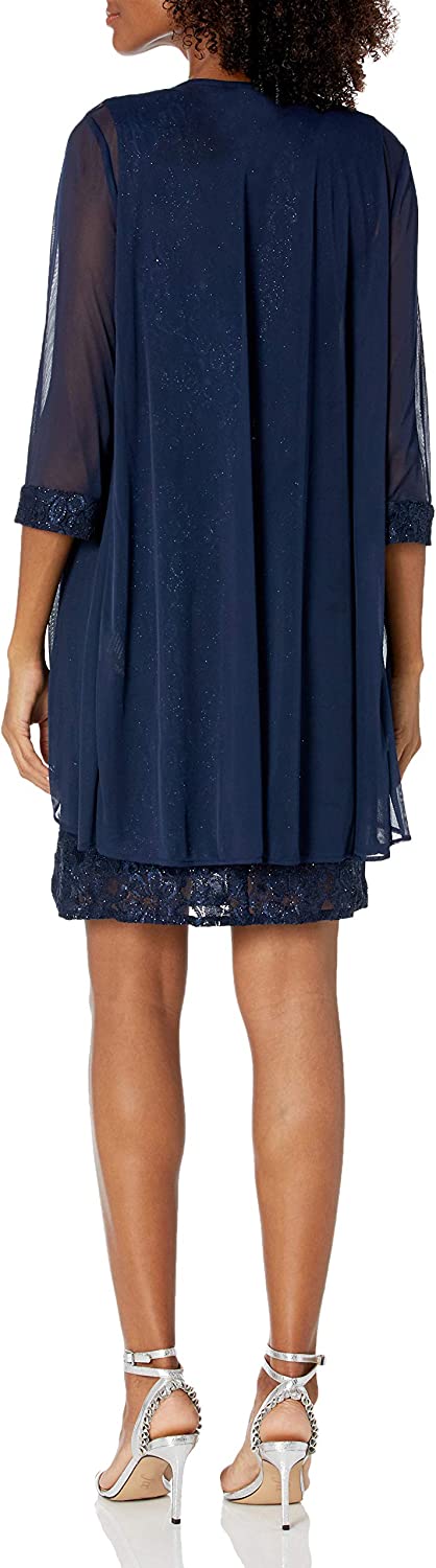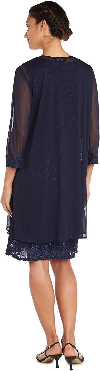 R&M Richards Women's Two Piece Fly Away Jacket Over Beaded Neck Laced Dress