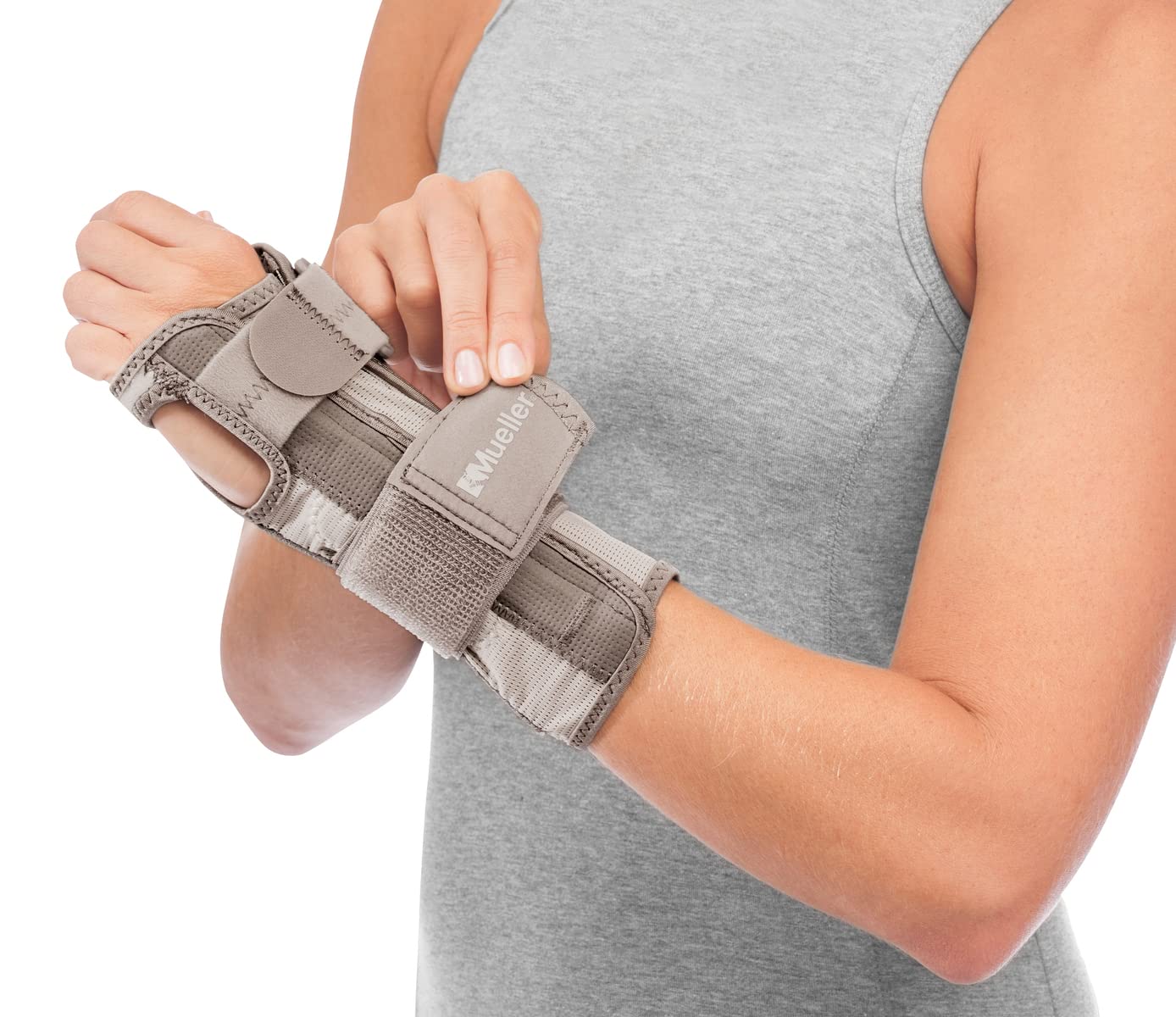 INTENDED USE: Provides support to weak or injured wrists; helps reduce motion in the wrist. Helps relieve pain and swelling caused by carpal tunnel syndrome while maintaining a full range of movement of the thumb and fingers.