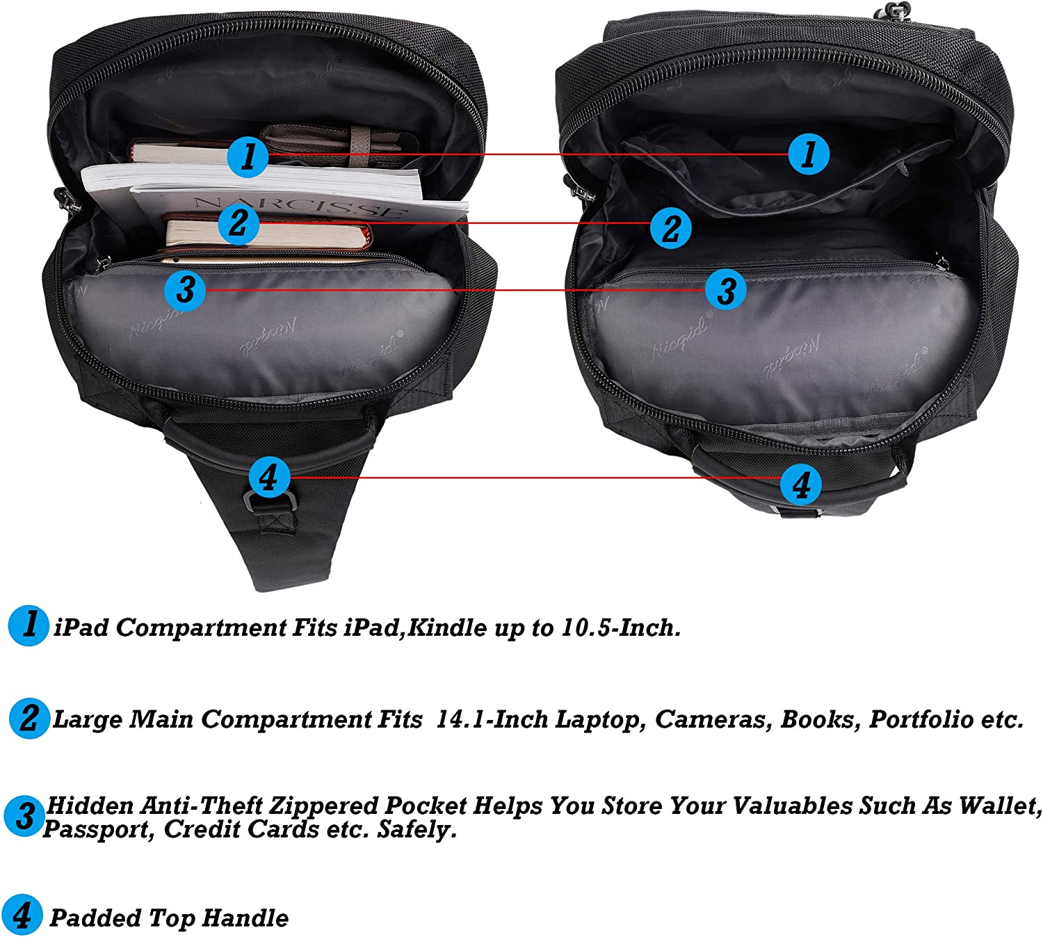 ✈【Lightweight】12.2in(L) x 16.5in(H) x 5.1in(W); fits laptop up to 14.1-Inch without laptop sleeve or case. Weight: approx. 1.54LB.