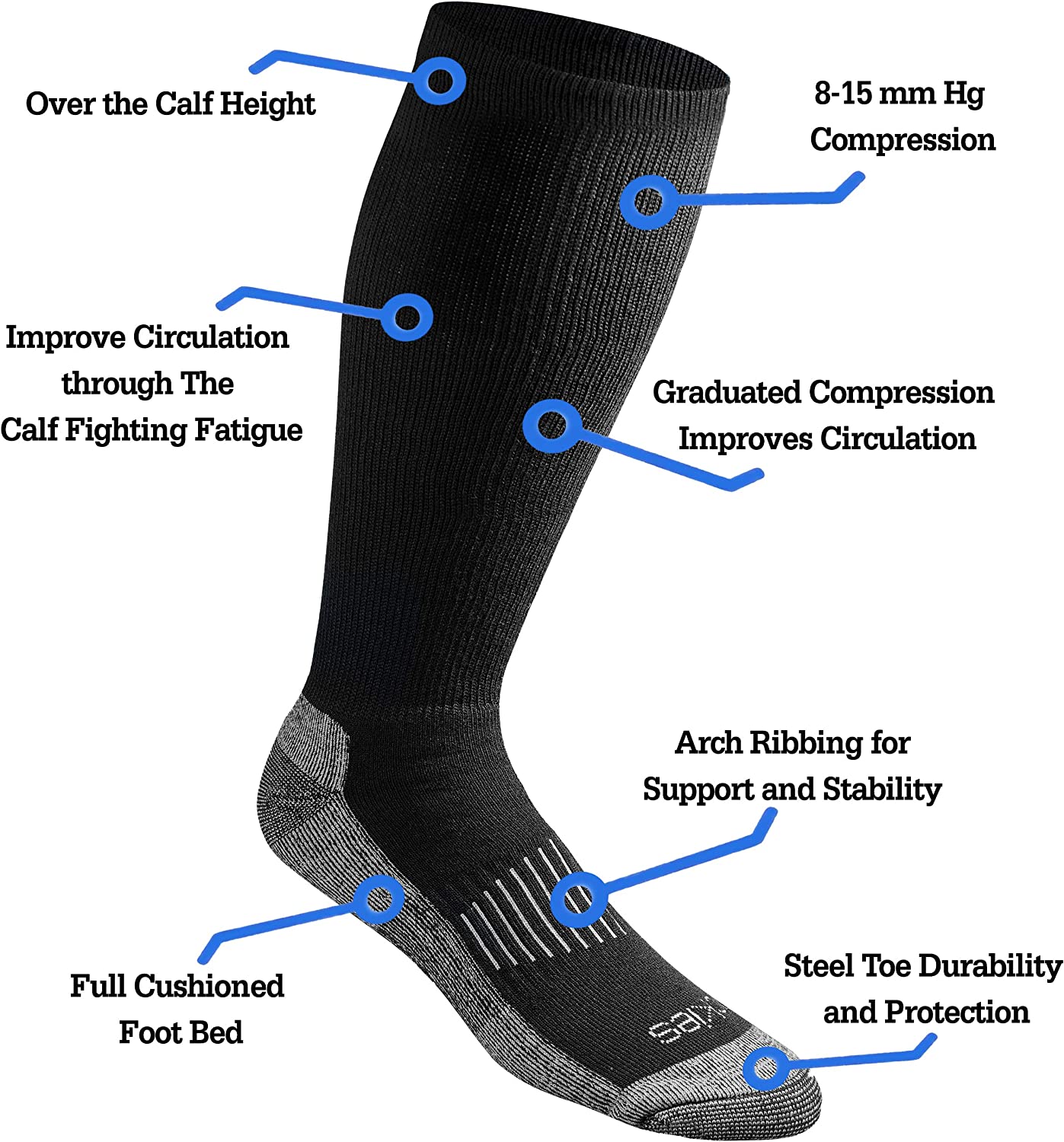 Over the calf compression socks constructed with moisture control fibers, compression sock help improve performance, fast recovery, increase blood circulation and reduce fatigue. Perfect for long flight travel, Essential Workers, long hour shifts, teachers, Medical professionals and seniors.