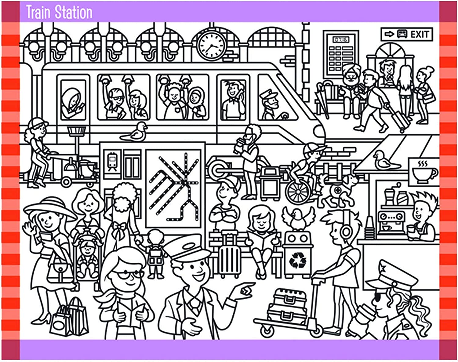 This fun pad is a seek-and-find game, a coloring pad, and a sticker pad all rolled into one! Match more than 400 full-color stickers to hidden objects on 14 town-themed pages, then color in the detailed scenes with pencils, markers, or crayons to create one-of-a-kind pictures. Sticker pages are color-coded and labeled to match scenes. The detail-rich scenes include a farmers market, hospital, highways, park, school, airport, amusement park, restaurant, mall, museum, café, construction site, bus station, and firehouse. Perforated edges make it easy to remove sticker pages to match to scenes.