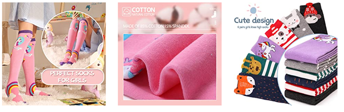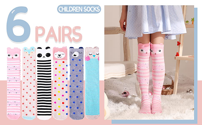 SIZE TIPS : These cartoon colorful tall socks for girls are approximately 15-16.5 Inch, suitable for most girls who are 3-12 years old. The knee high socks for girls are whether over calf or knee, depending on how long your girl's legs are.