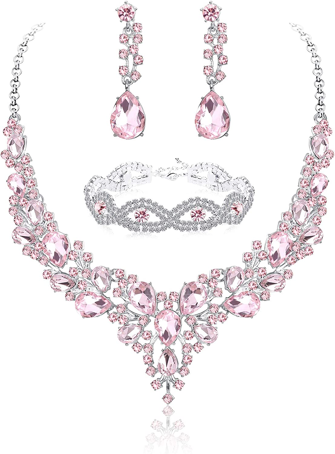 BRIDAL JEWELRY SET-- Each Costume Jewelry Set Has A Bridal Necklace, A Pairs Of Bridesmaids Earrings, And A Shiny Prom Bracelet. Unique Beauty, Perfect Wedding Jewelry Set, Def A Great Buy!