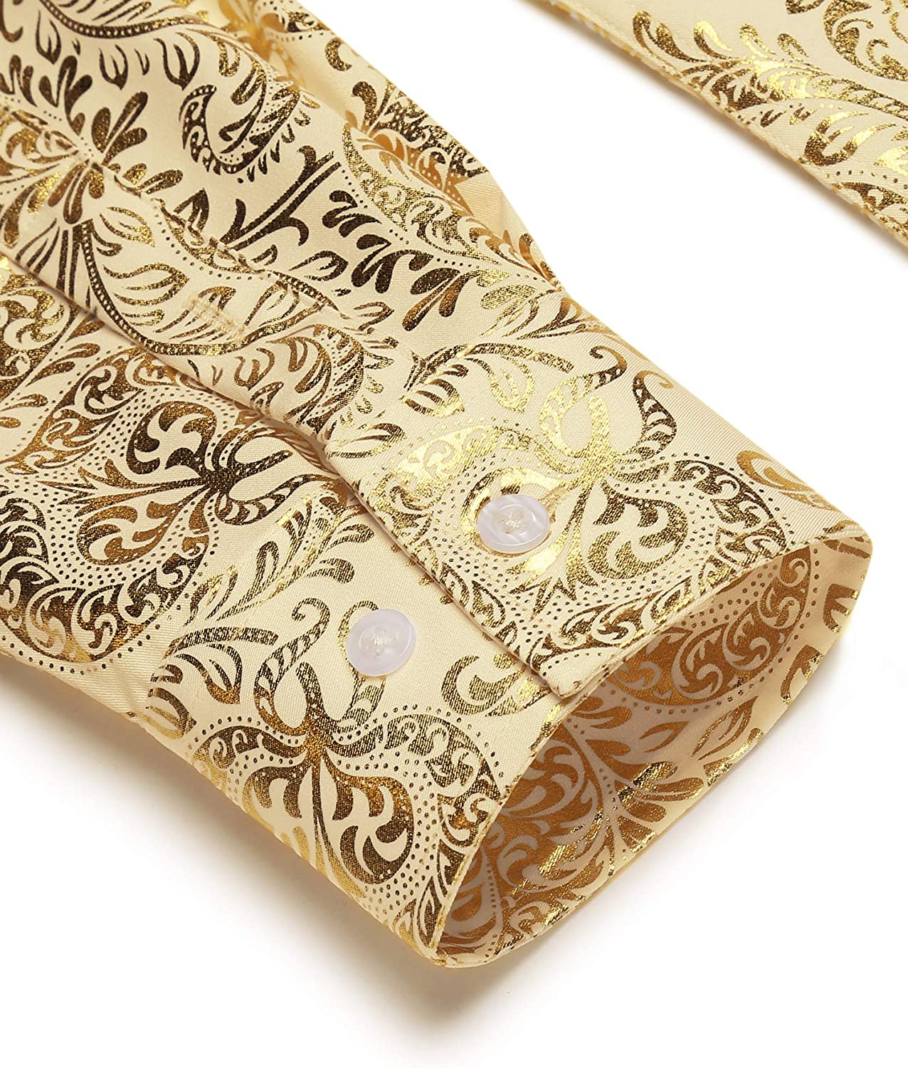- Elegant Gold Floral Printed Dress Shirts: Crafted from hand selected material, this long sleeve shirt has been elaborately tailored for a comfortable regular fit. Clean and understated designs give an instant touch of effortless cool.