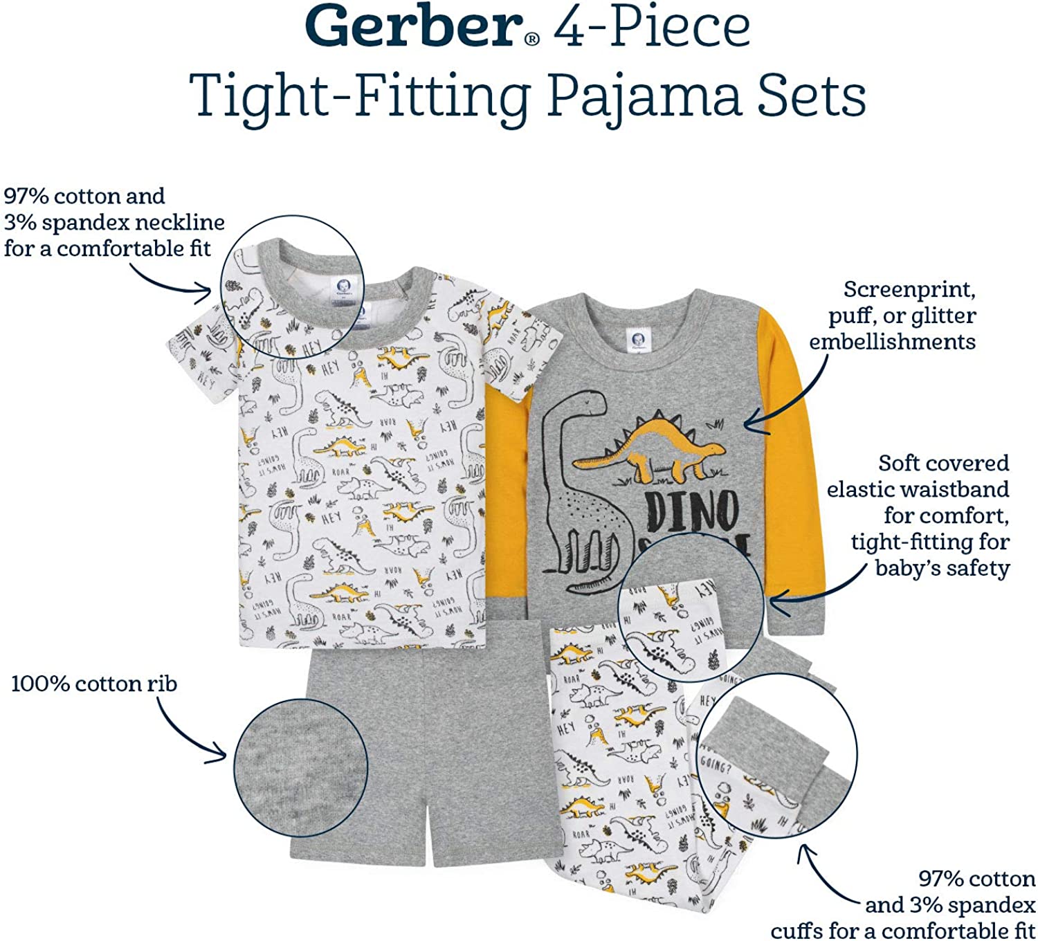 Gerber Baby Boys Toddler Snug Fit 4-Piece Pajama Set