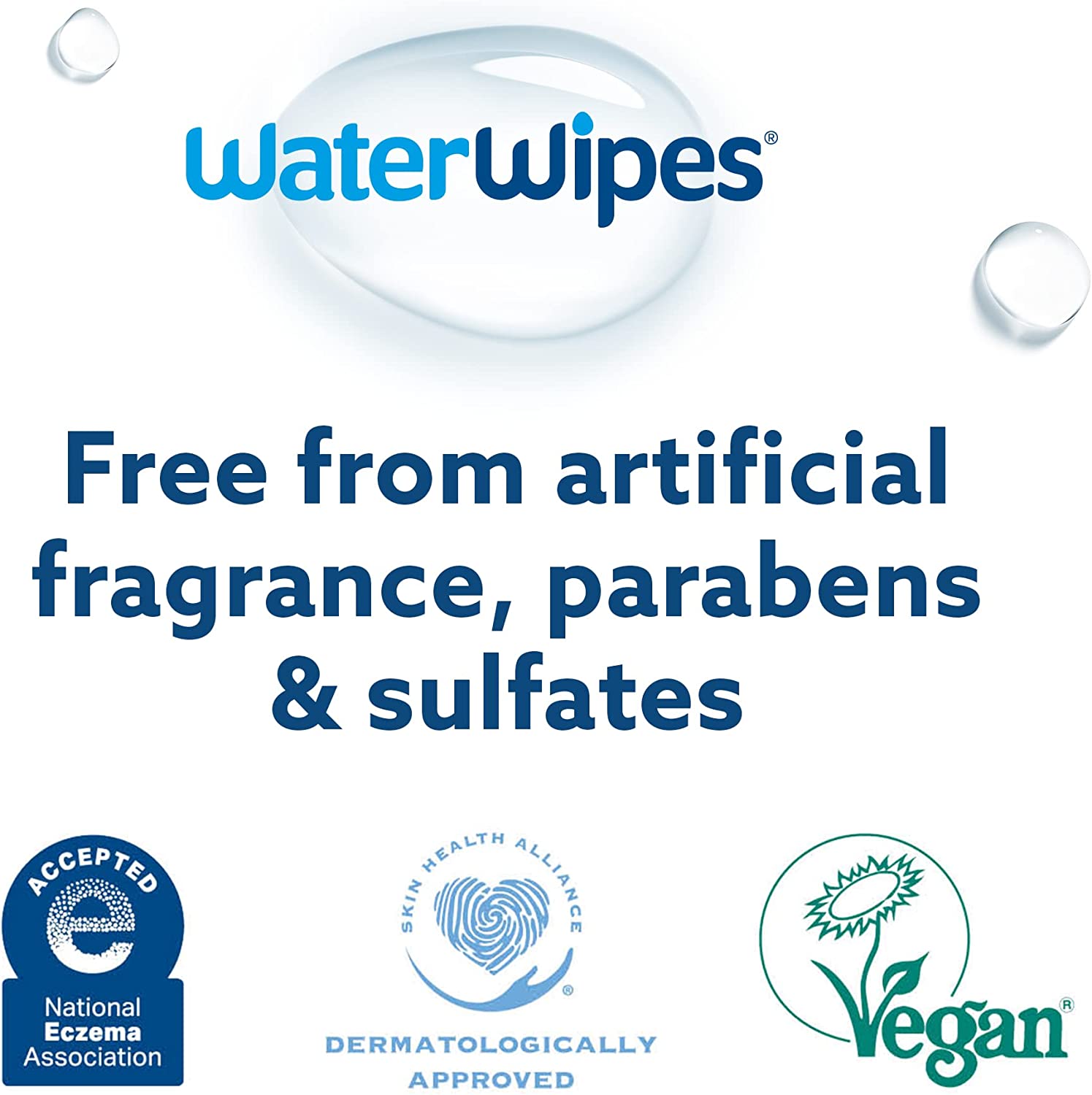 TRUSTED BY DERMATOLOGISTS: Suitable for eczema-prone skin and allergy sufferers, WaterWipes are accepted by the National Eczema Association of America, Dermatologically Approved by the Skin Health Alliance and registered by the Vegan Society.