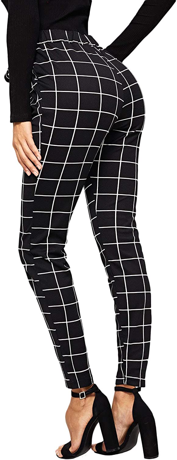 WDIRARA Women's Stretchy Plaid Print Pants Soft Skinny Regular Fashion Leggings