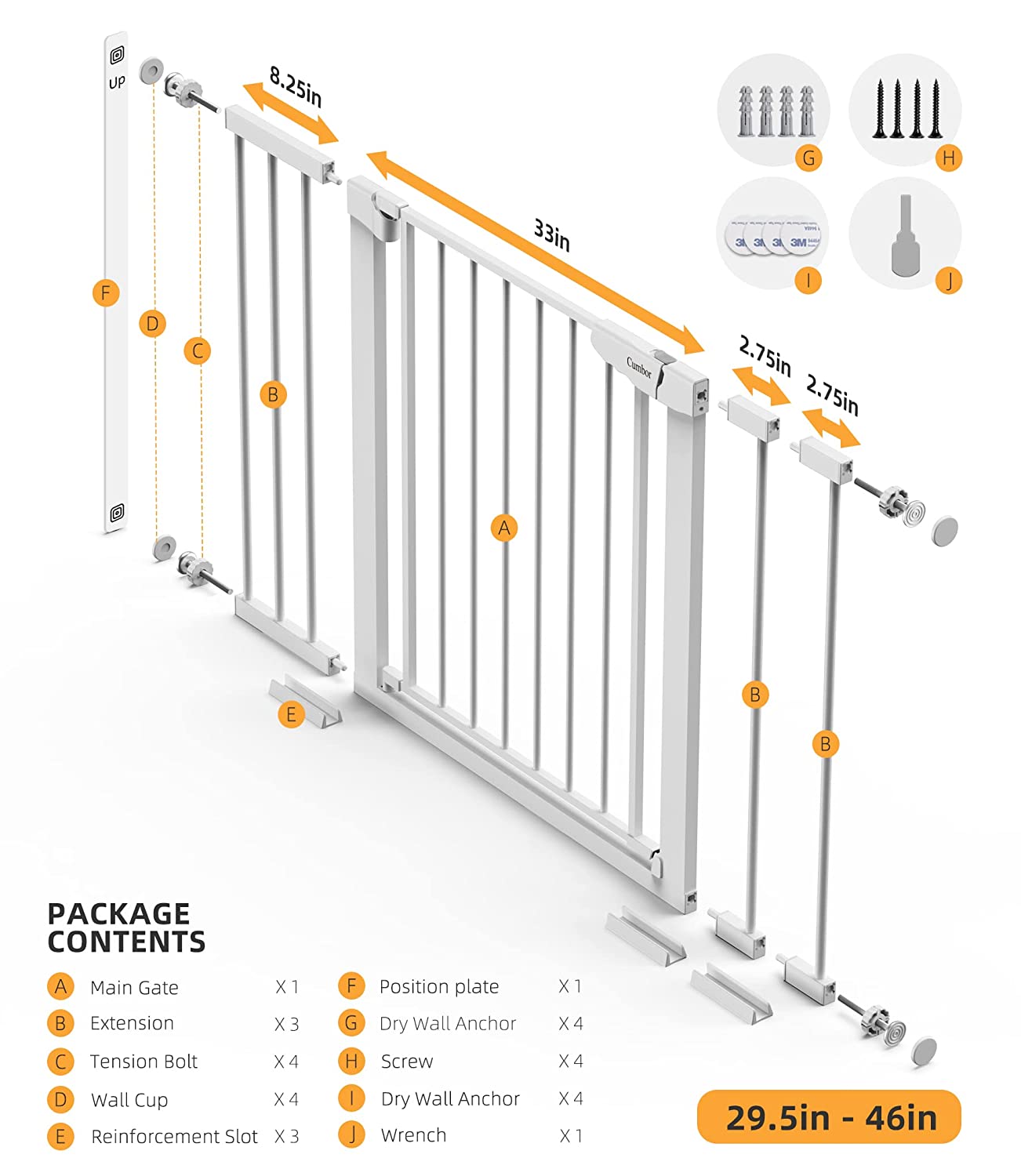 • 【Easy installation】 simple pressure mounting is easy enough for a nanny to install for grandkids in 10 minutes without any help. Free to go through from both sides. Perfect for stairs, hallway, doorways and open spaces(be ensure to measure the installation distance of the upper and lower walls is within 29.7-46Inch, If your wall isn't flush or have baseboards)