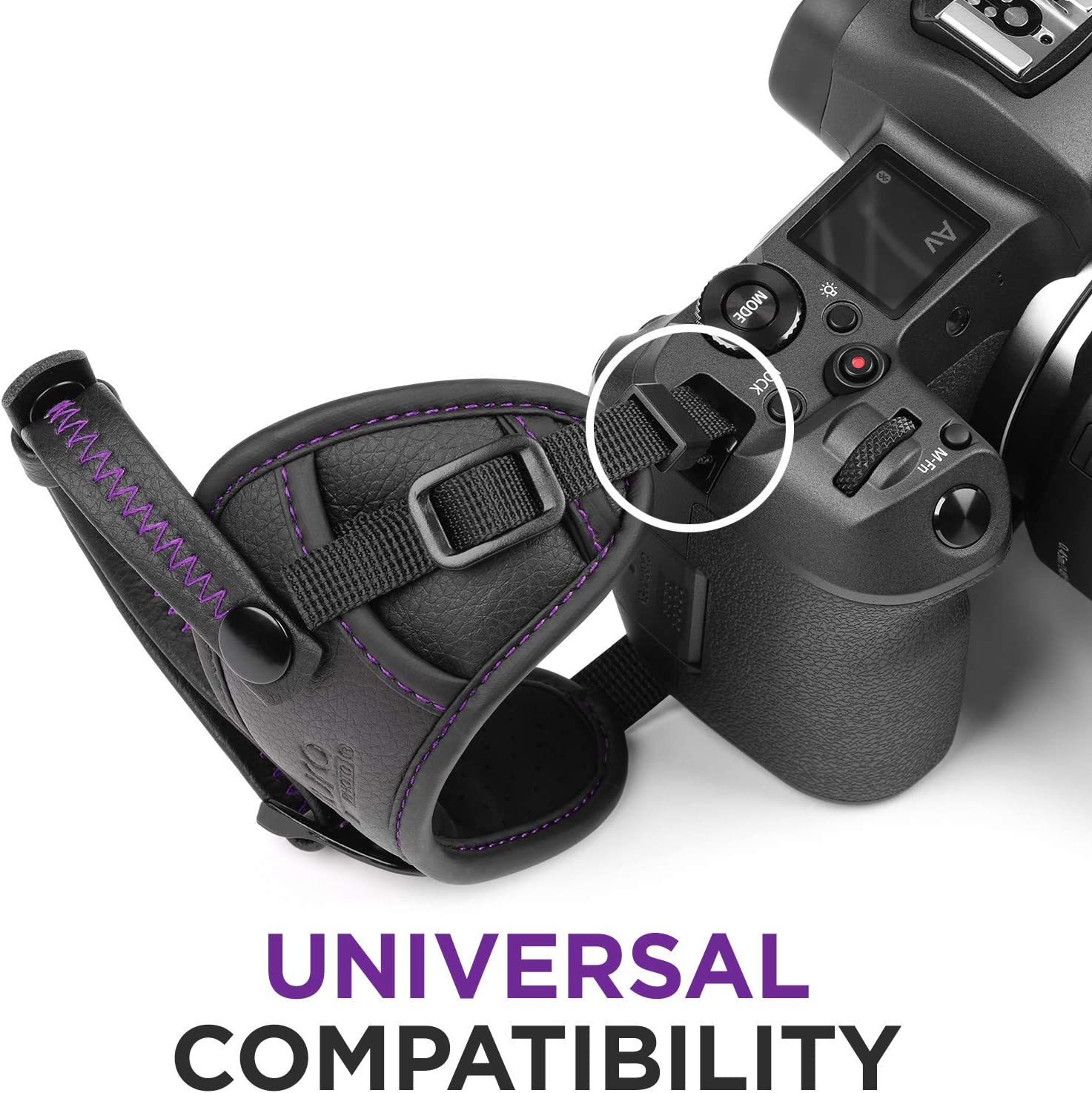 SECURES YOUR CAMERA: Grips the hand and wrist to prevent accidental slips from turning into disastrous drops, adjustable for all hand sizes our leather camera strap is made of premium PU leather, the DSLR strap adjusts to fit hands of all sizes and snaps on easily. Compatible with any DSLR Camera with a standard ¼" tripod screw mount.