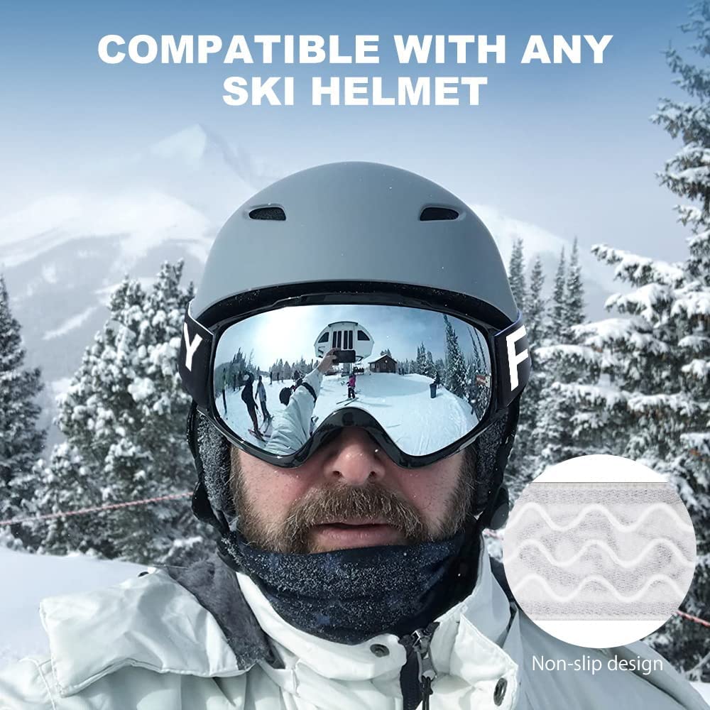 【High Performance Dual Lens】- Anti-scratch, anti-fog, anti-impact, full face real revo mirror coated reflective lens, 100% UV protection, stronger and more durable than other ski goggles. Inner lens features PRO long-lasting anti-fog performance material that works in conjunction with the ventilation system. No fogging while skiing or snowboarding. Exceptional Optical Clarity Ball lenses and frameless design create an ultra-wide-angle HD field of view.