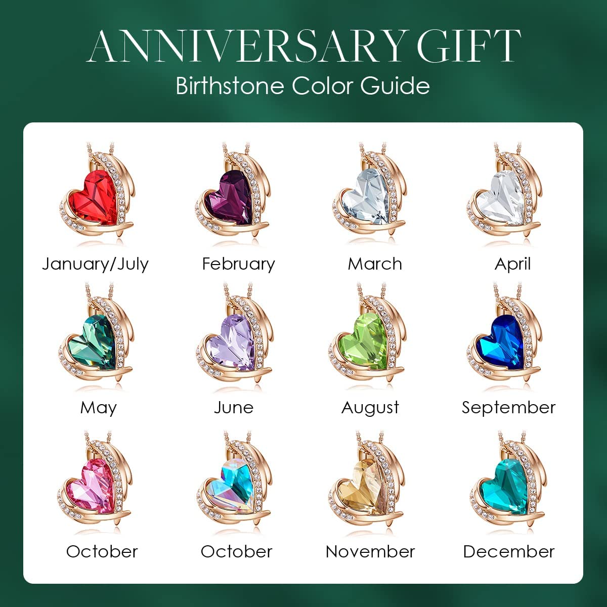 CDE Love Heart Pendant Necklaces for Women Silver Tone Rose Gold Tone Crystals Birthstone Christmas Jewelry Gifts for Women Mother's Day Birthday/Anniversary Day
