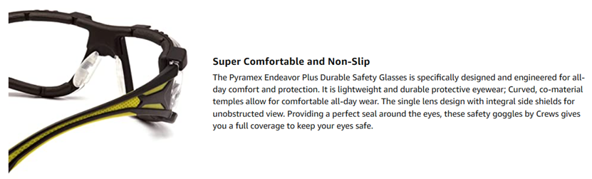 | Included Components | Endeavor Safety Glasses |