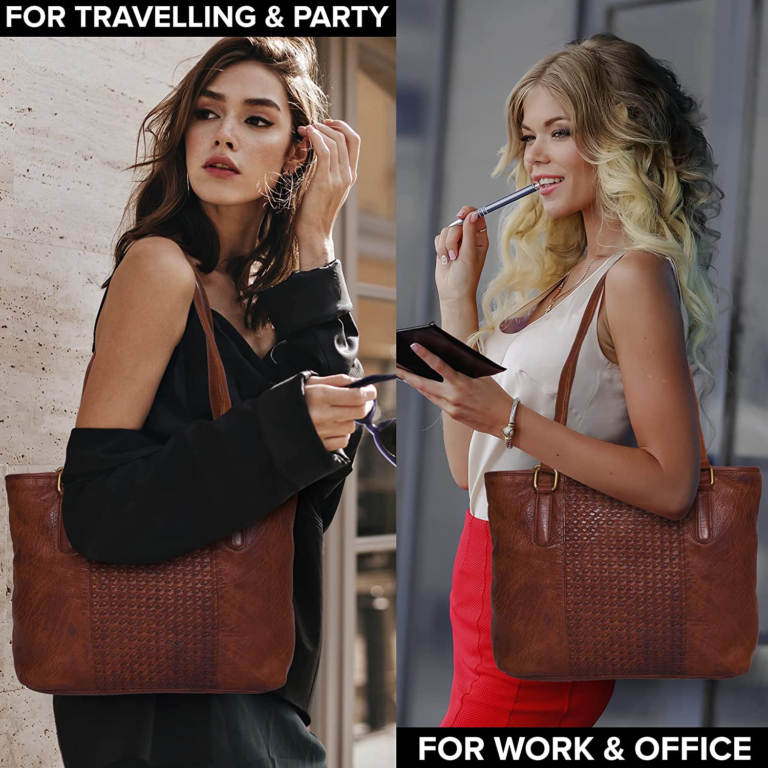 Real Leather Women's Tote Shoulder Bag - Top Handle Travel Ladies Purses Handbags Designer Vintage Purse for Women