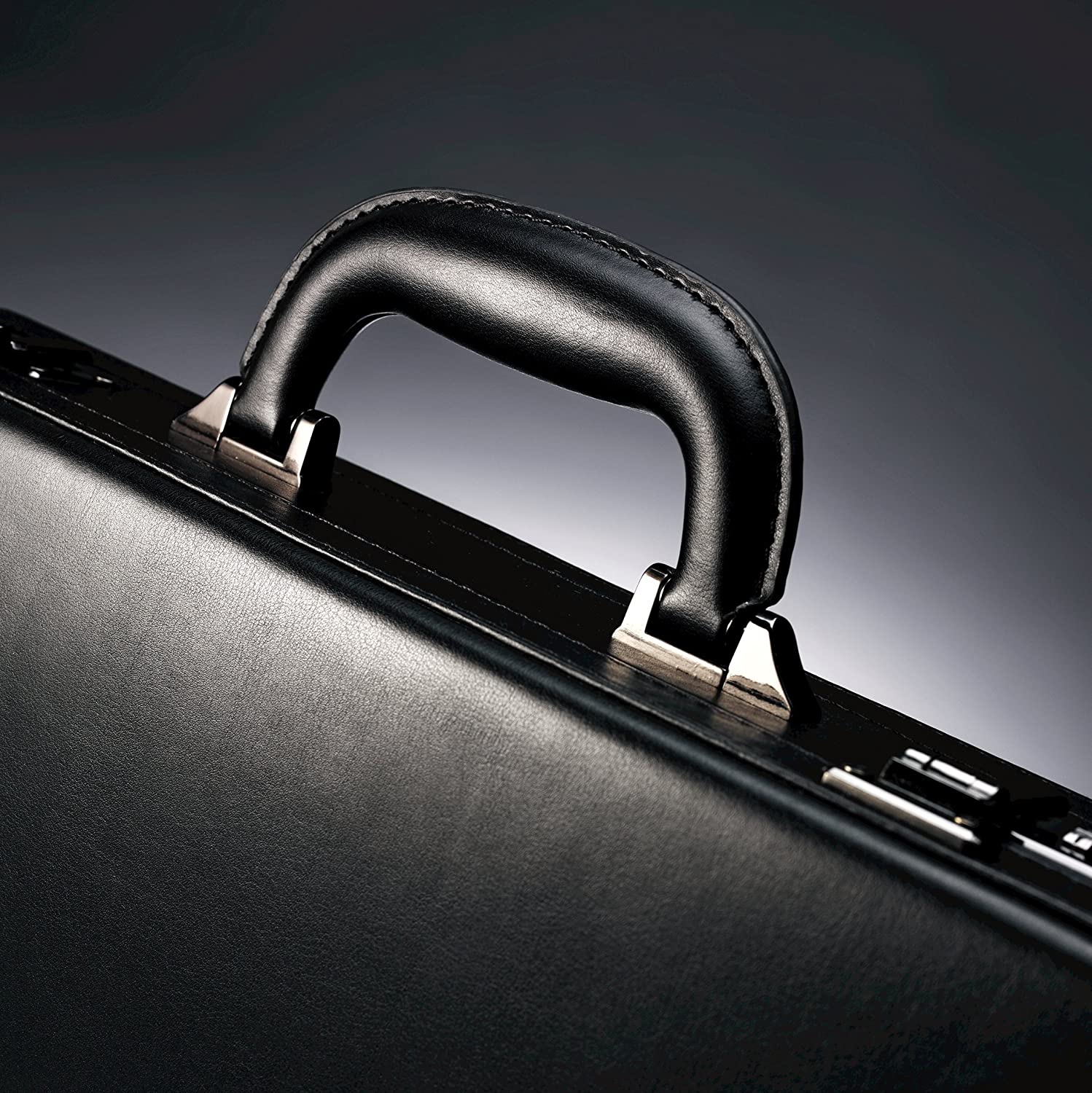 Samsonite Carrying Case (Attached) for Document - Black - Leather. Body dimension: 17.875 x 13 x 4.25 inches, Overall Dimension: 17.87 x 14.25 x 4.25 inches.