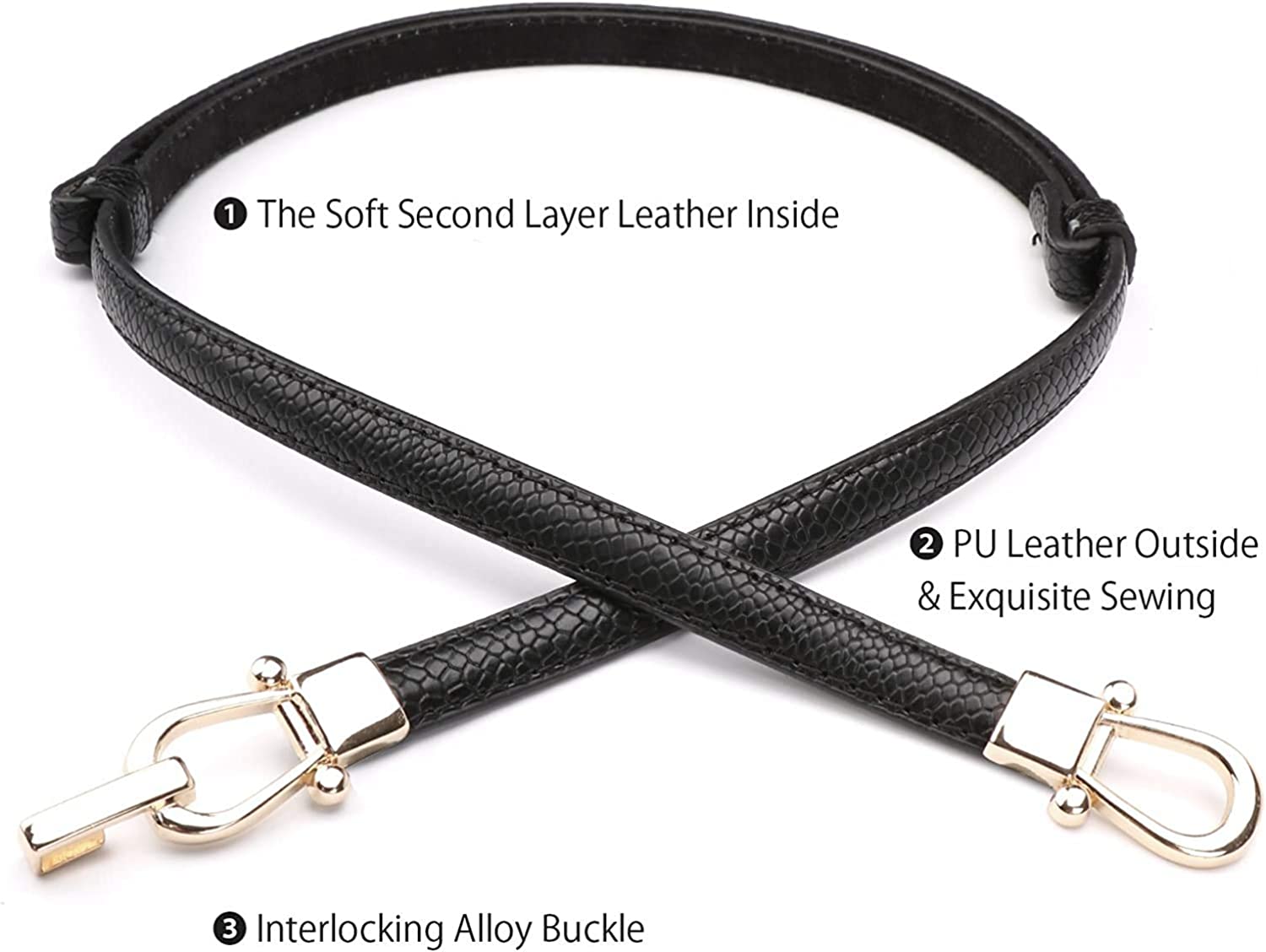 ▶MATERIAL & COMFORT--- This 2 pack women thin belt is made of high quality cowhide leather and raw leather inside,extremely soft and comfortable to wear.