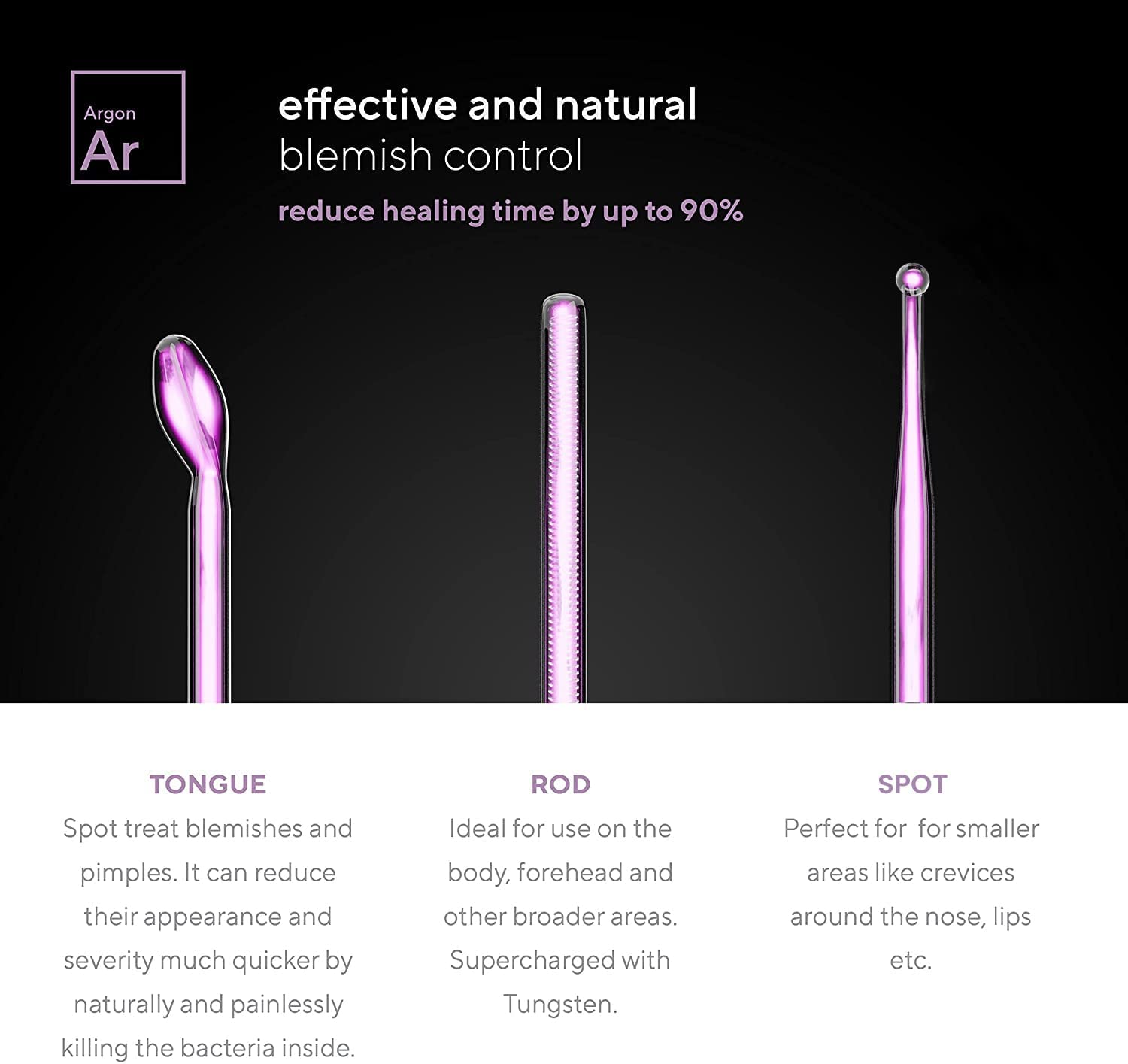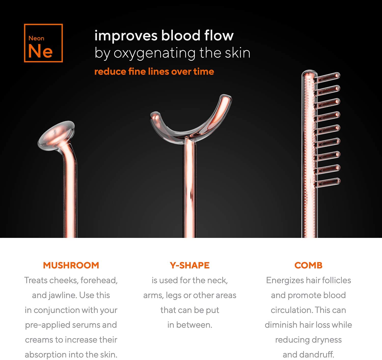 • Boost Your Skin With Argon & Neon – The NuDerma Professional skin therapy wand includes a total of 6 beauty wands including 3 all new Argon powered applicators and applicators supercharged with Tungsten for improved effectiveness. Use the natural healing power of Argon and Neon high frequency to boost your overall skin profile
