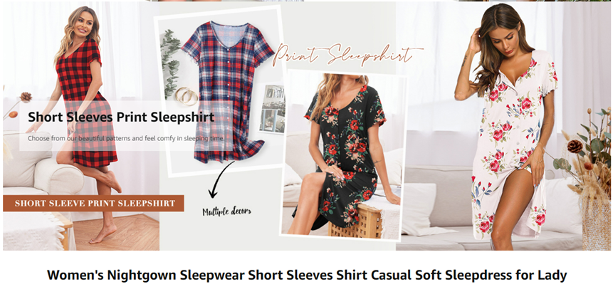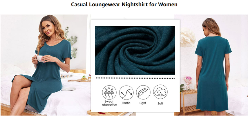 Short sleeve & knee length pajama dress, feeling much freedom while you are walking.It is a great choice to wear this night shirt while watching TV with your family or your friend.