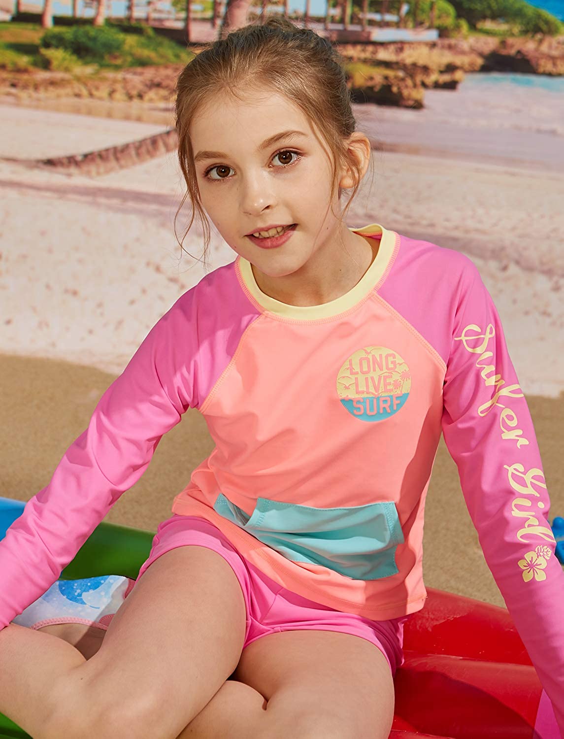 Rash guards with long sleeves, raglan sleeves offer enhanced mobility keeps them warmed and agile as they hit the waves