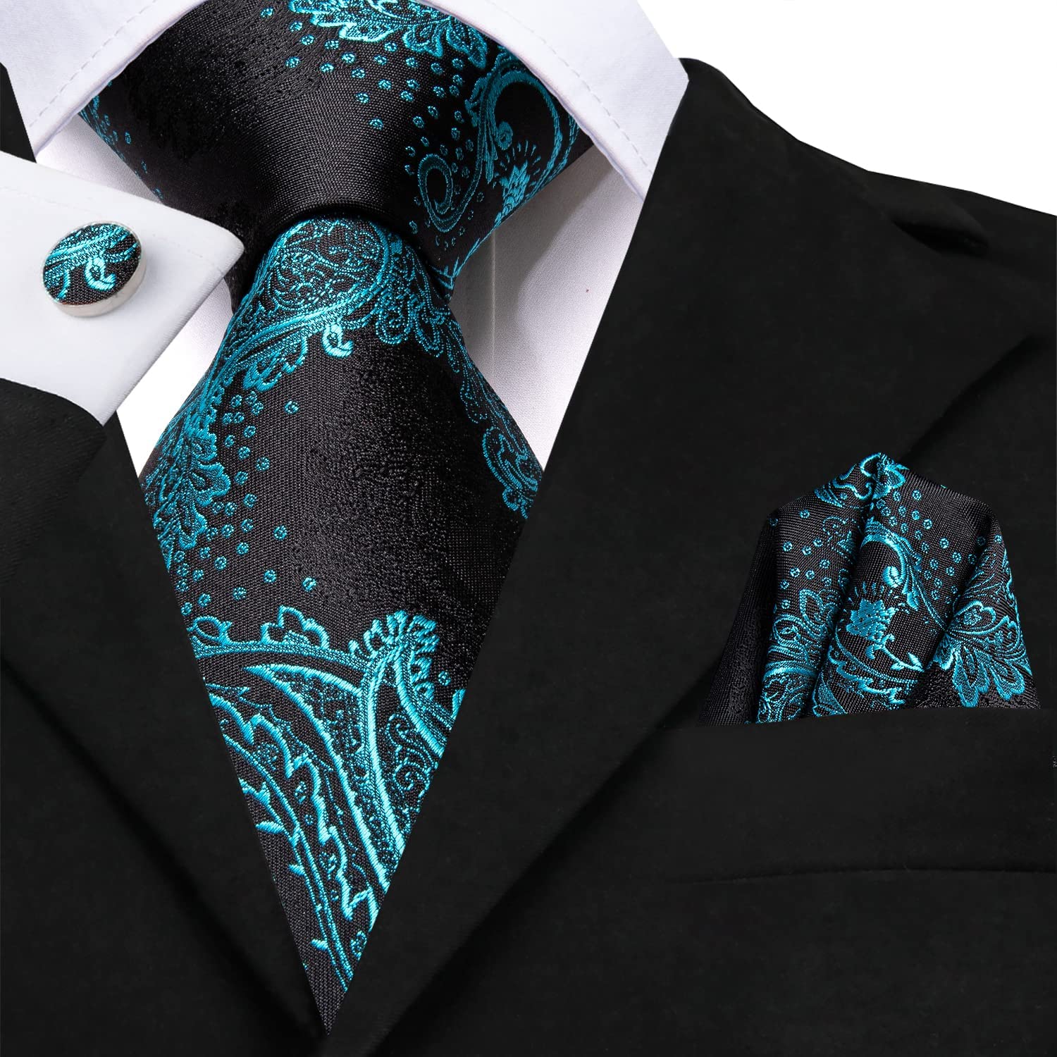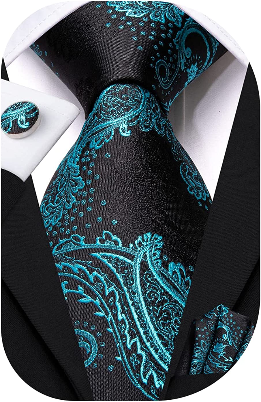 Dubulle Mens Tie Sets Woven Paisley Stripes Neckties Pocket Square Cufflinks Business Wedding