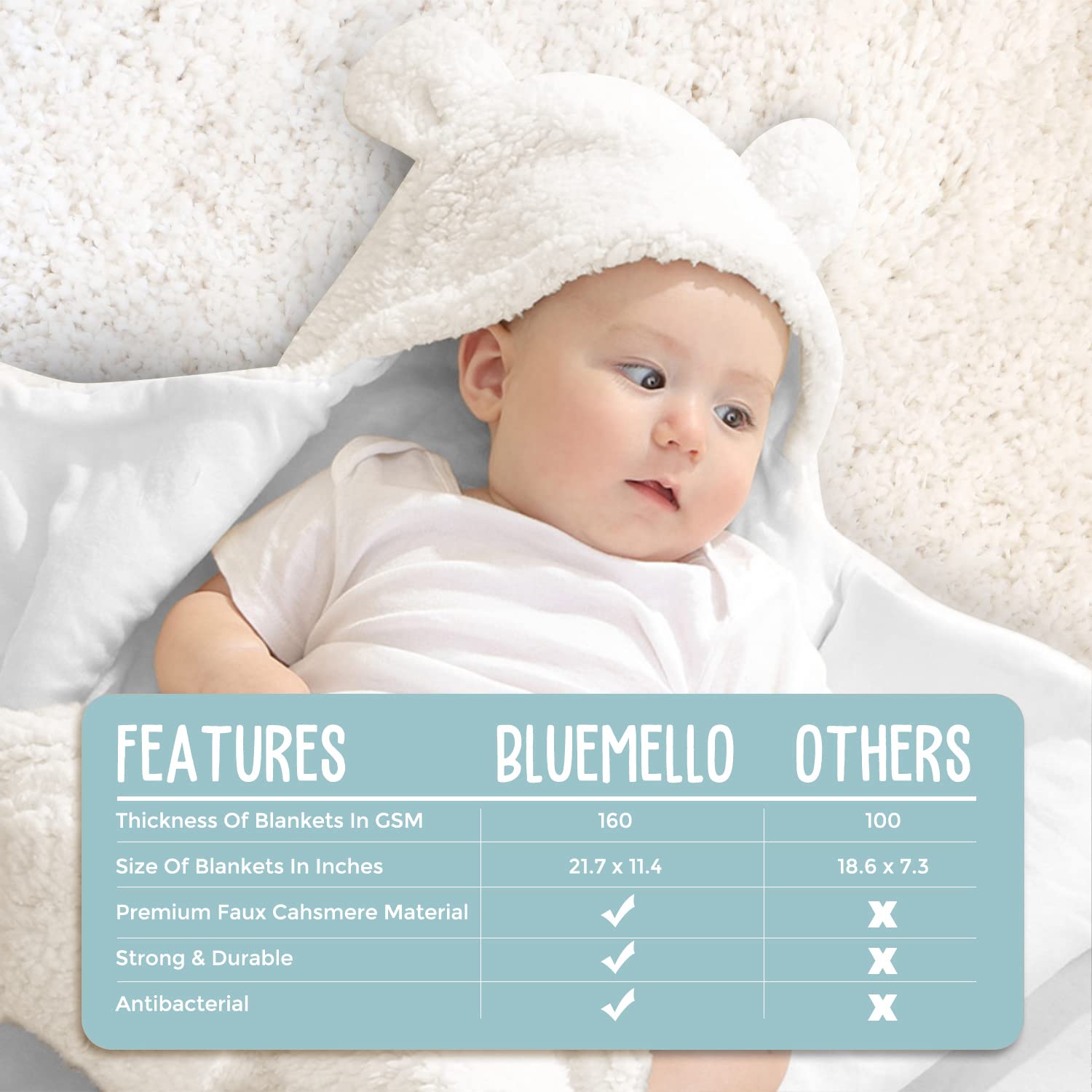 BlueMello Baby Swaddle Blanket | Ultra-Soft Plush Essential for Infants 0-6 Months | Receiving Swaddling Wrap White | Ideal Newborn Registry and Toddler Boy Accessories | Perfect Baby Girl Shower Gift