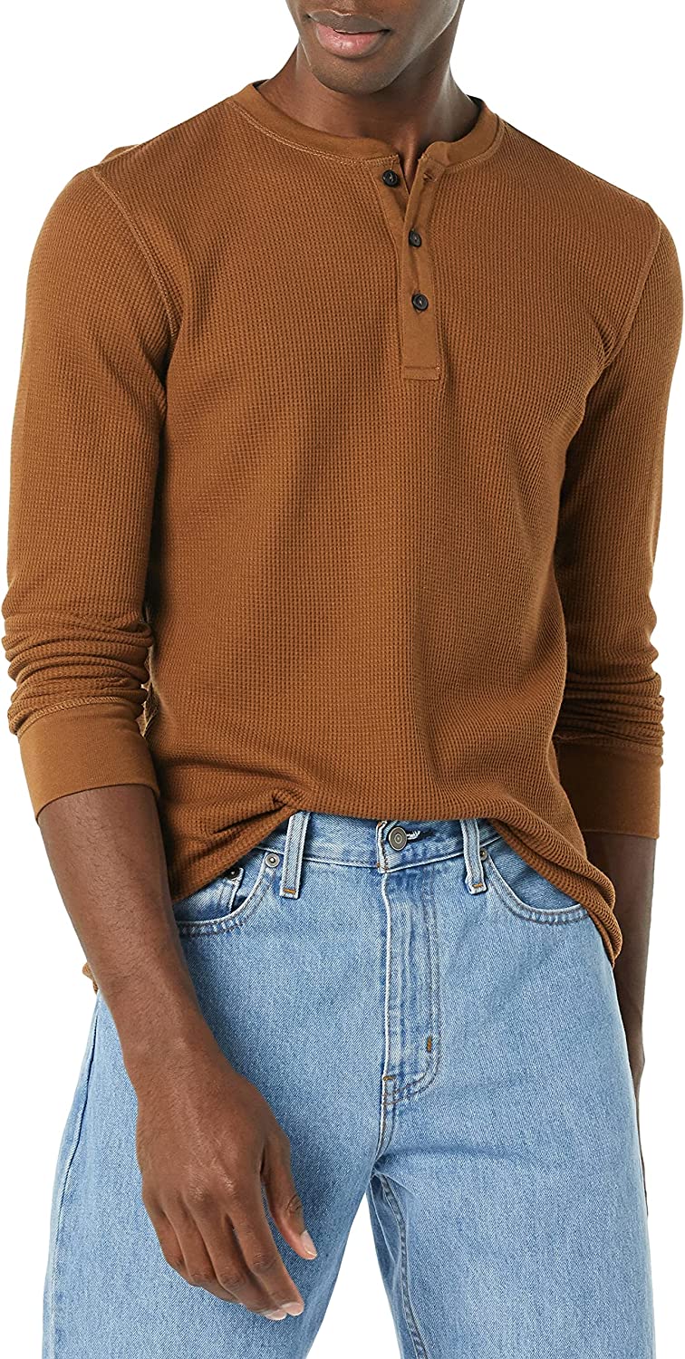 Amazon Essentials Men's Slim-Fit Long-Sleeve Waffle Henley Shirt