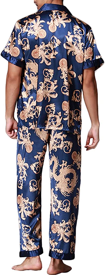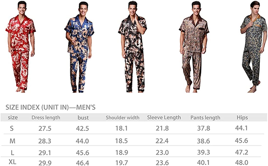 Gift:The satin pj set is a perfect gift choice for your dad, husband, son, or friend on birthday,Christmas Day,New Year,Valentine's Day. Fit for SleepWear,pajama party,fathers day,indoor, living room, bedroom, hotel, vocation, travel, and daily sleepwear.