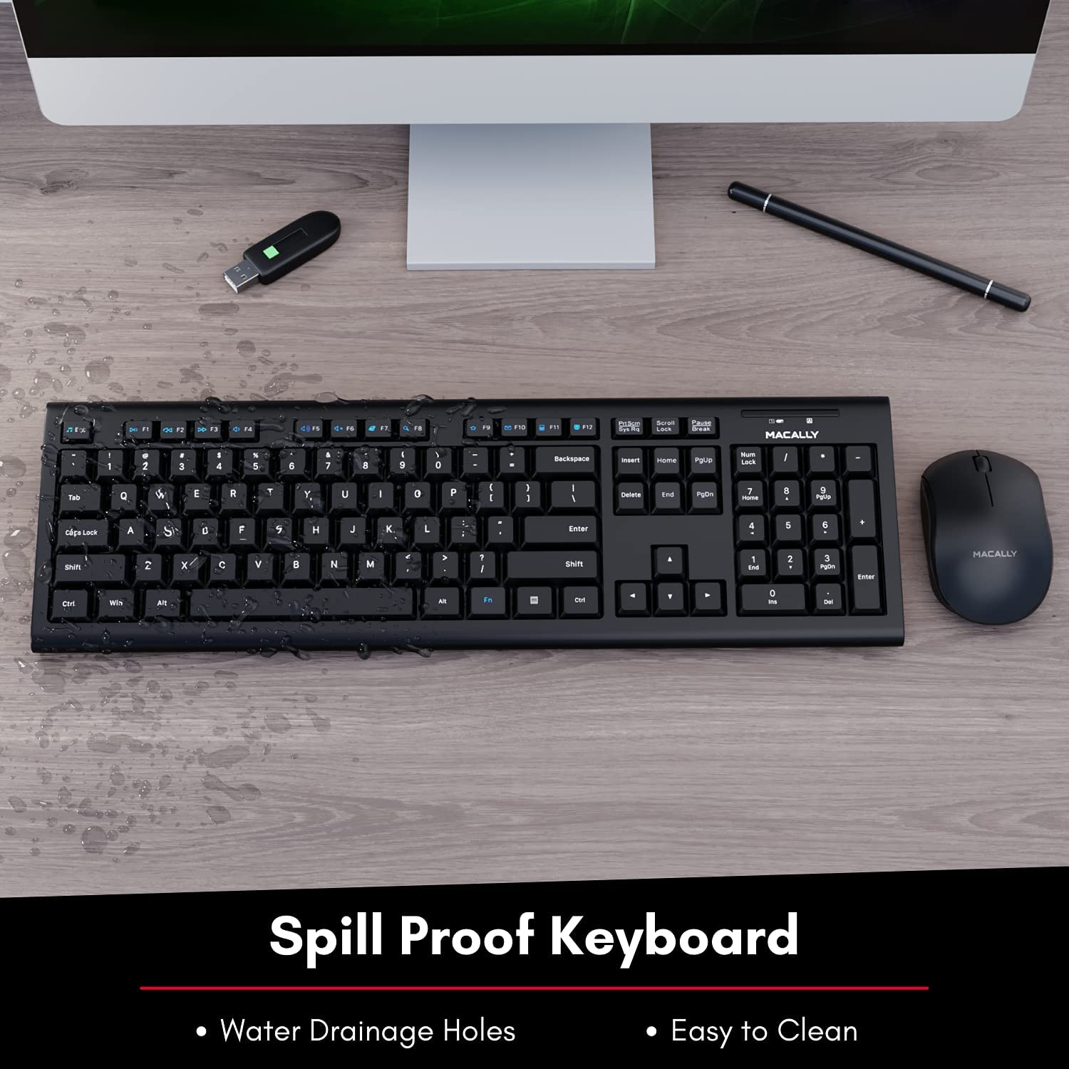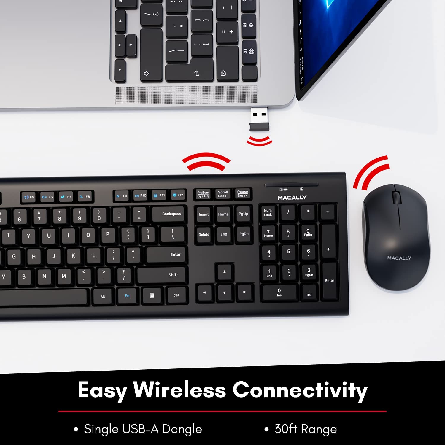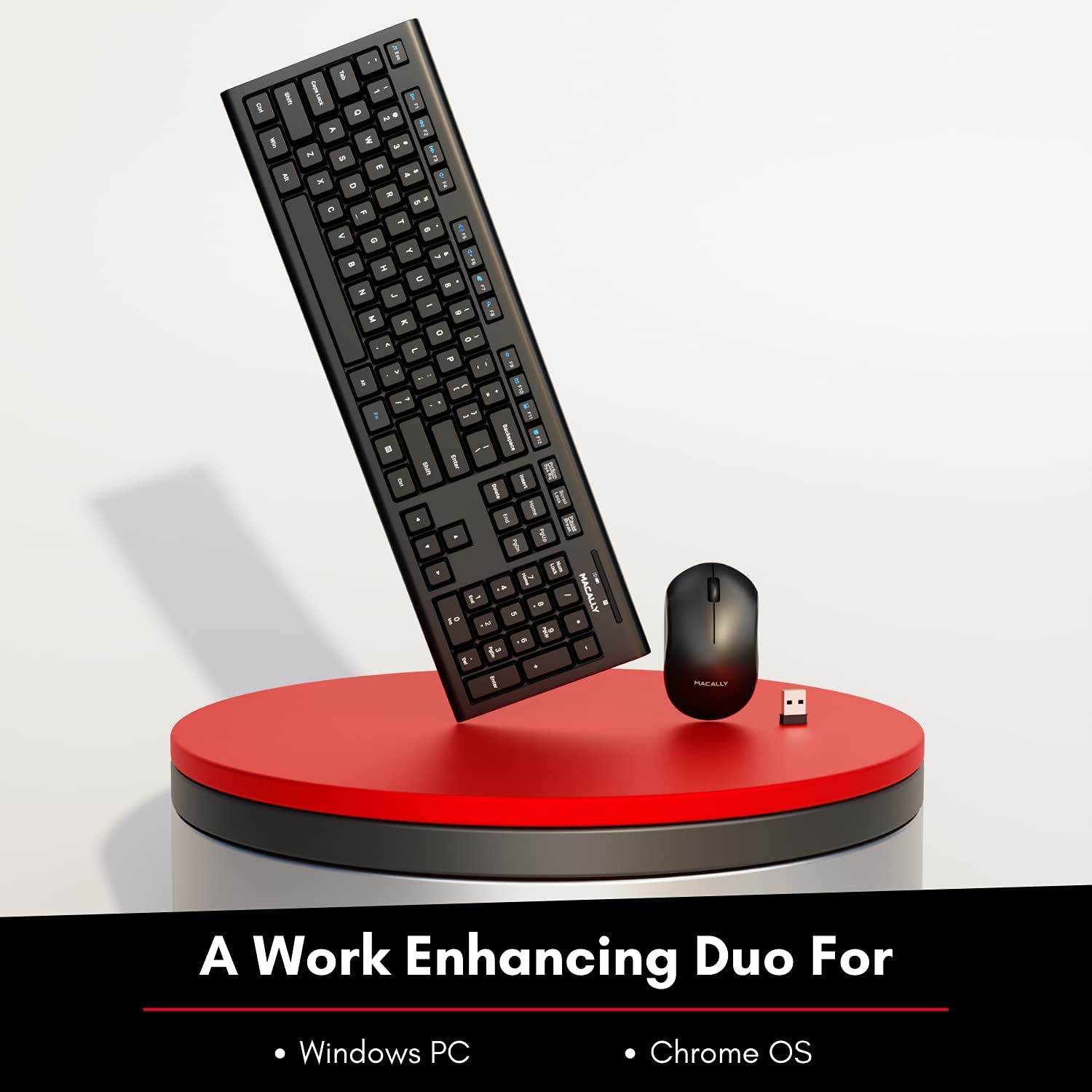 Macally Wireless Keyboard and Mouse Combo, 2.4G Full Size Wireless Mouse and Keyboard Combo for PC, Desktop, Laptop, Notebook, ChromeBook - Ultra Slim Cordless Computer Keyboard Mouse Set