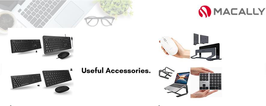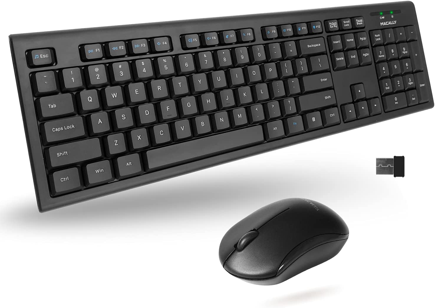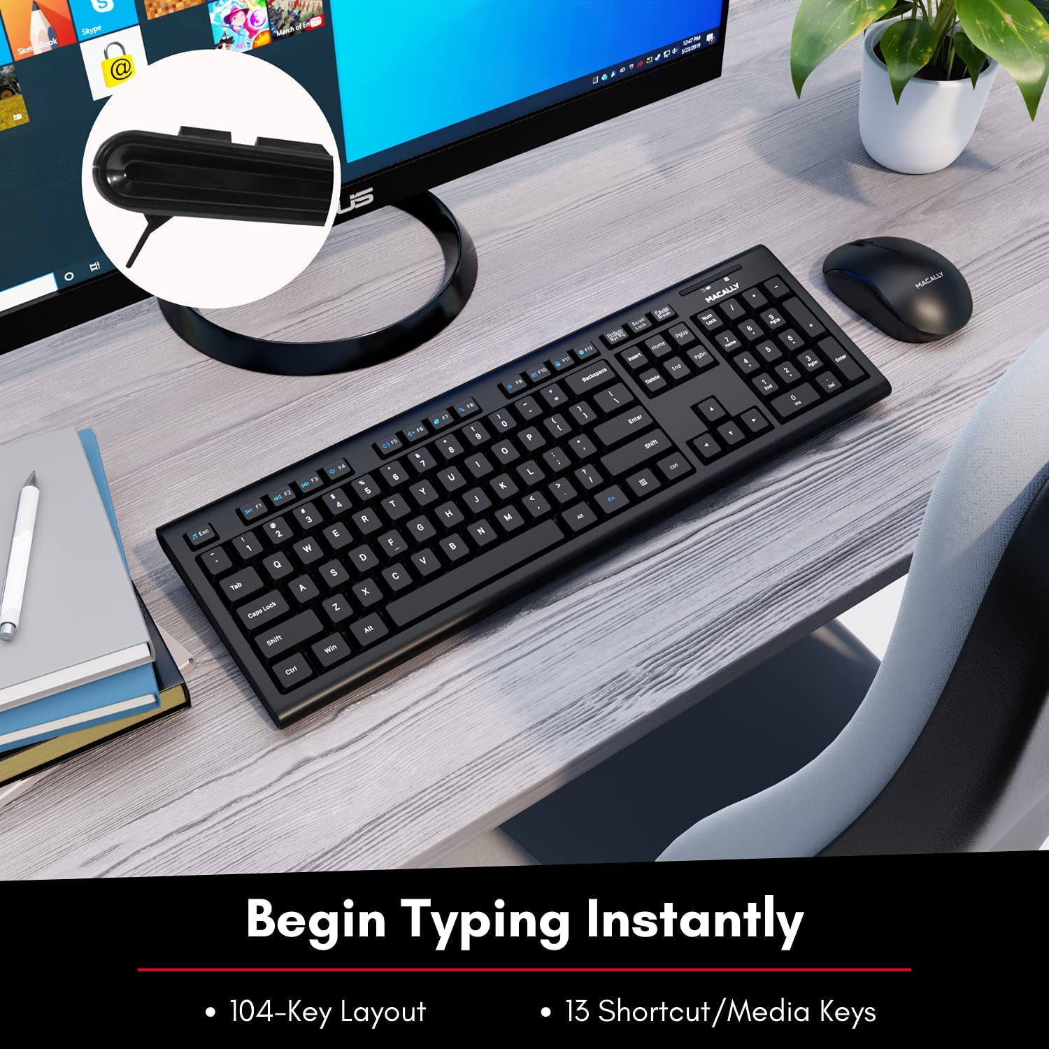 Macally Wireless Keyboard and Mouse Combo, 2.4G Full Size Wireless Mouse and Keyboard Combo for PC, Desktop, Laptop, Notebook, ChromeBook - Ultra Slim Cordless Computer Keyboard Mouse Set