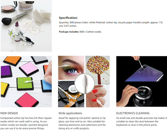 - ✅【PACKAGE INCLUDES】: 4 packs of cotton swabs, 800 pieces in total. this swabs handle are made with recycle paper with moderate hardness and strong toughness.