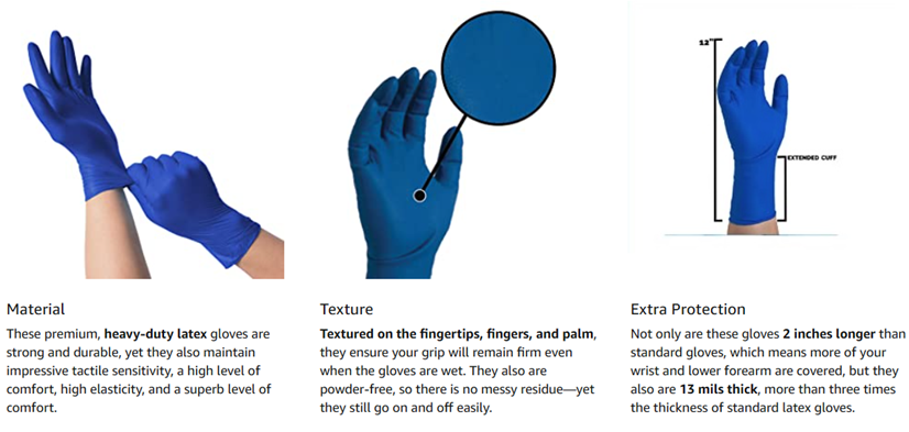 THICKER & LONGER: Our 13 mil latex gloves are more than 4x thicker than standard gloves for extra barrier protection from chemicals and punctures and have a 2 in. longer cuff to cover your forearm.