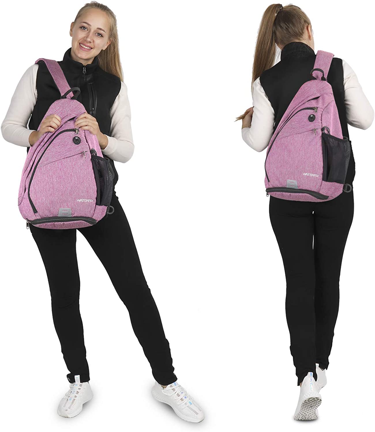 INNOVATION UMBRELLA POUCH & WATER BOTTLE HOLDER: A zippered mesh net storage at the bottom for wet umbrella or wet towel. The side water bottle holder provides stable brace during outdoor sports. For the convenience, it features the hidden back pocket and shoulder strap pocket(Suitable for credit cards, money bills and phones smaller than 5.8 inches in size)