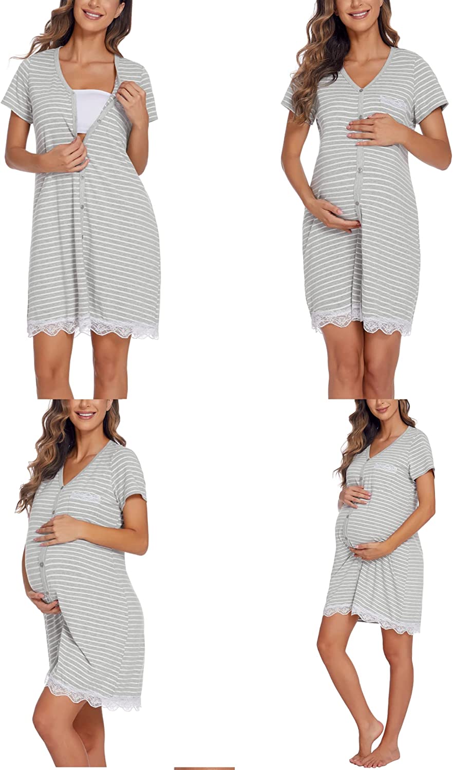 Ekouaer Women's Nightgown Striped Tee Short Sleeve Comfy Sleep Nightshirt Button Down Pajama Dress S-XXXL
