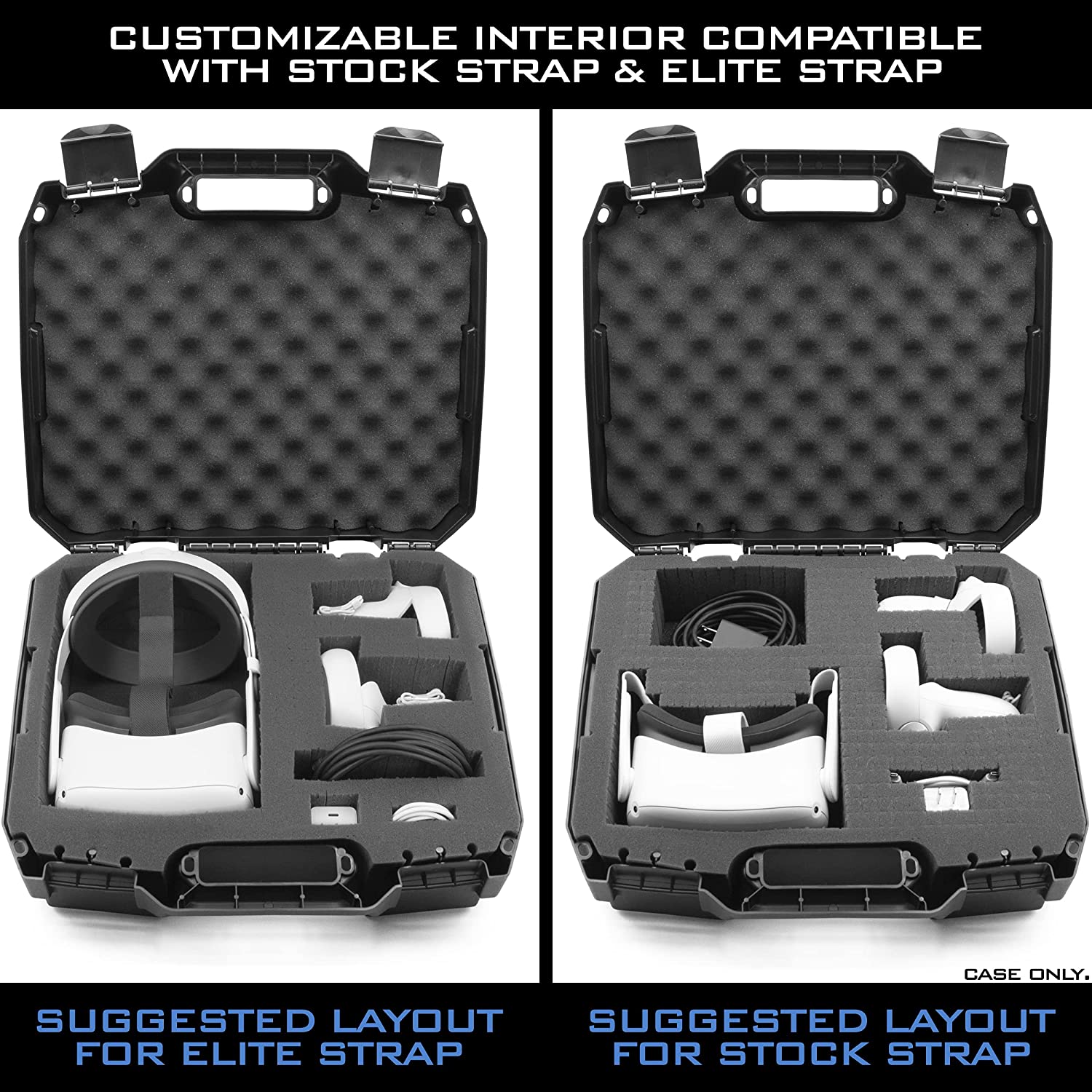 CASEMATIX Hard Case Compatible with Meta Quest 2 and Oculus Quest 2 VR Gaming Headset & Accessories - Hard Case with Customizable Foam fits Elite Strap and Other Accessories
