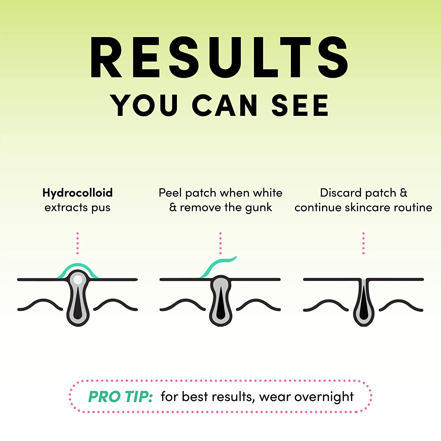PROMOTES FASTER HEALING - For best results, wear for 6+ hours, or simply leave on overnight. You can tell the zit patch is ready to be removed when the clear center has turned opaque white.