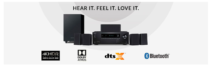 - COMPLETE SOUND. Take at-home movie nights from dull to dramatic: 1 Front/Center Speaker: Full-Range, Acoustic-Suspension, 4 Surround Speakers: Full-Range, Acoustic Suspension, 1 Subwoofer: Bass reflex and 1 Receiver: 4K/60p video and HDR.