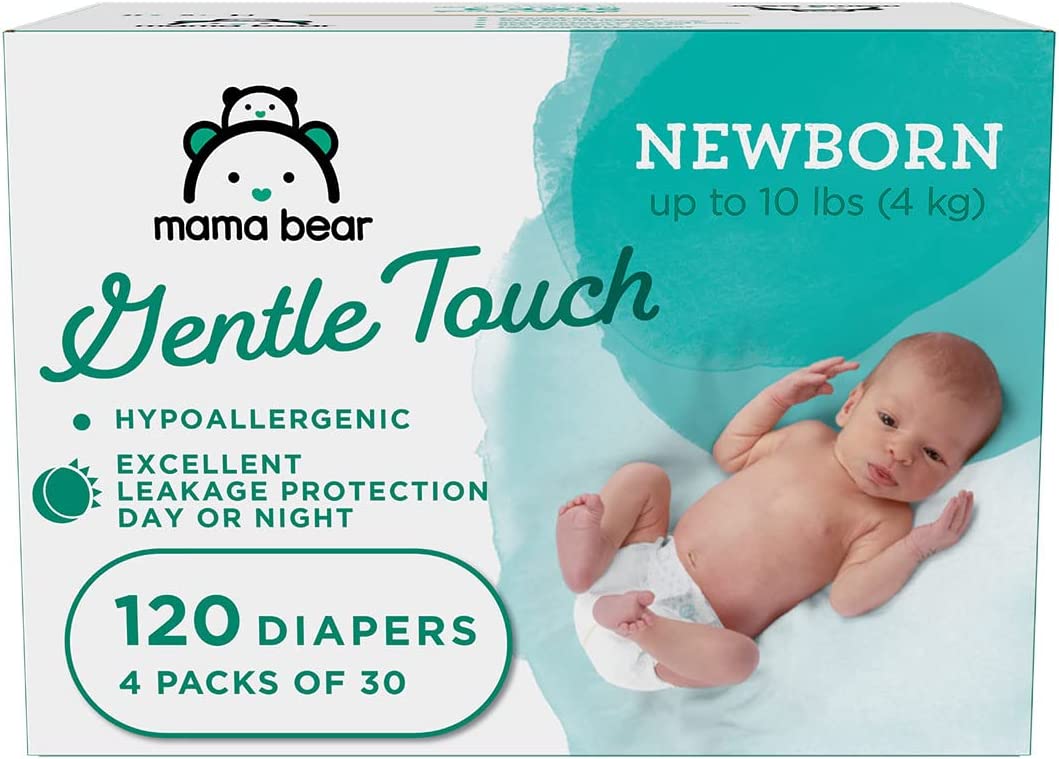 Amazon Brand - Mama Bear Gentle Touch Diapers, Hypoallergenic, Size 1, 196 Count (4 packs of 49)