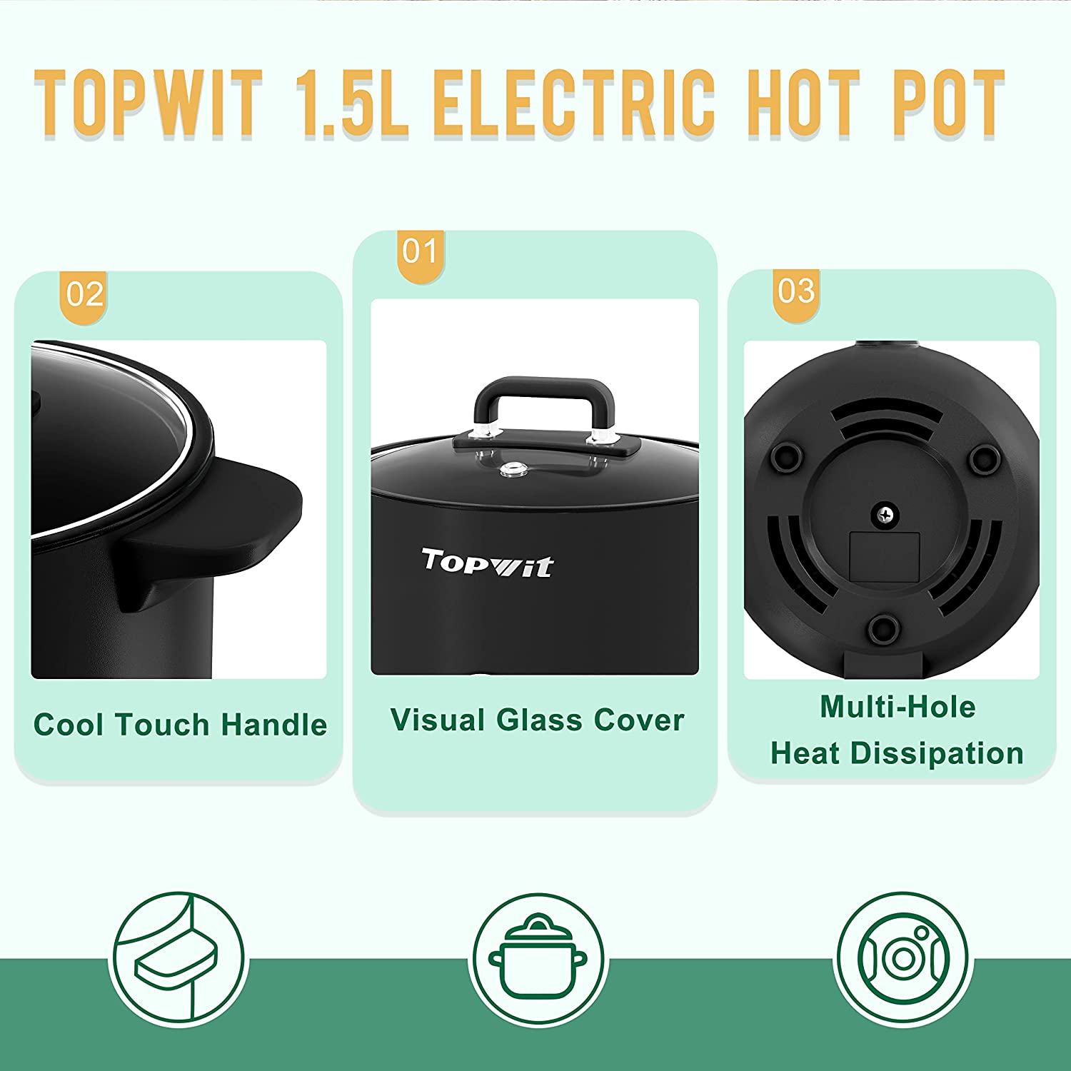 Topwit Electric Hot Pot Mini, Electric Cooker, Noodles Cooker, Electric Kettle with Multi-Function for Steam, Egg, Soup and Stew with Over-Heating & Boil Dry Protection, Dual Power, 1.2L, Green