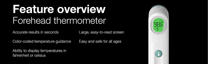 - RELIABLE RESULTS – Get reliable results within seconds with the Braun Forehead Thermometer. This contact forehead thermometer has professional accuracy with a gentle forehead touch, and can be used for the whole family
