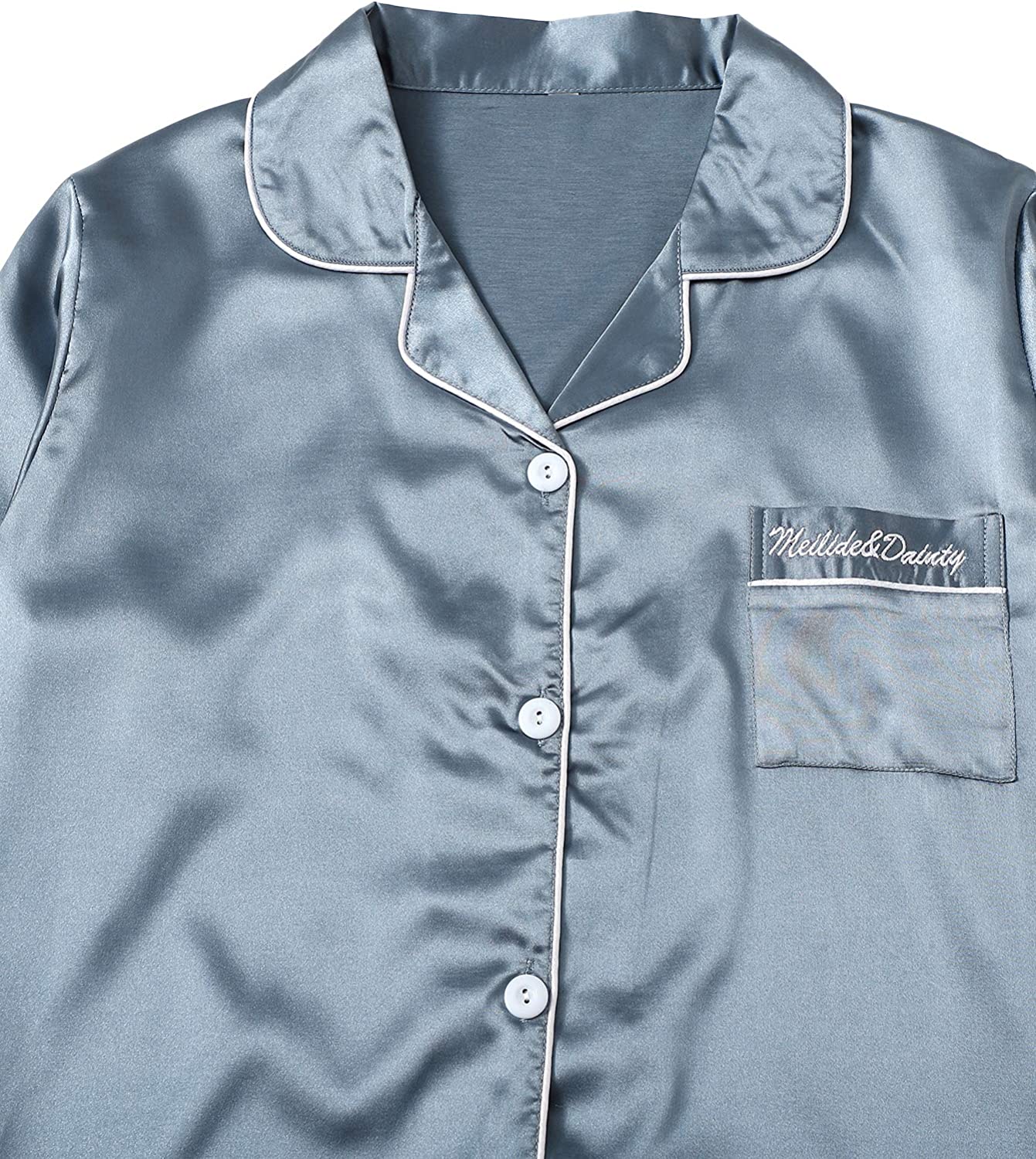 Satin cami pajama set with long sleeve button down shirt loungewear