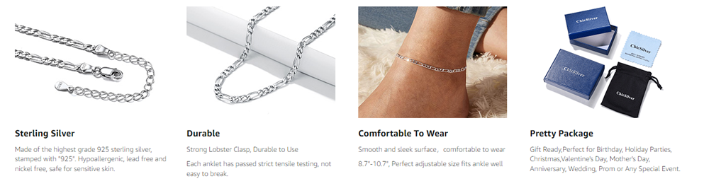 - ?【 STERLING SILVER ANKLET 】Made of hypoallergenic platinum plated sterling silver, passed strict skin test grants allergy free, nickel-free, these simple anklets are safe for sensitive skin. Ideal jewelry for women, teens, girls of all ages !