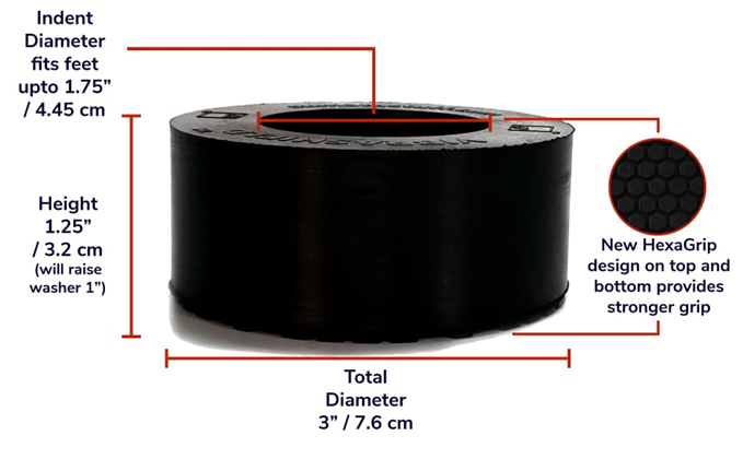 - ? UNIVERSAL SIZE ? Fits all appliance feet up to 1.75" in diameter for front load or top loader clothes washers, dryers, 2-in-1 combo or other appliances from any brand manufacturer; Compatible with washing and drying laundry machines or other appliances that are installed side by side, stacked, or standalone and with or without pedestals; ? REMINDER ? Order 2 sets of VibraShield antivibration non-slip pads if you have a side by side washer and dryer set to keep them both the same height