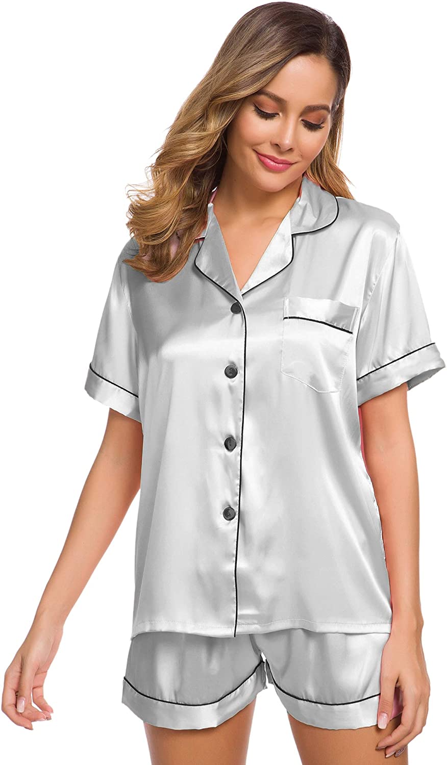 Occasion:Women's Short Sleeve Silk Satin Pajamas Set, which is suitable for daily wearing and easy to match.Comfortable and suitable for lounging and sleeping,pajama party,girls day,bridal sleepwear,indoor, living room, bedroom, hotel, vocation, travel, and daily sleepwear.