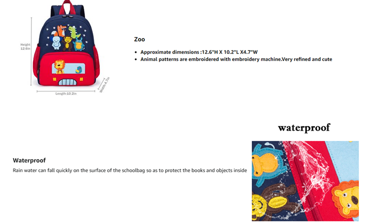 • The main compartment can hold a lot of things, such as an ipad, a set of clothes that are not very thick, fruit, food, fruit, small books etc, and small toys can be put on the front pocket. You can put down the A4 size book. This bag is used as a kindergarten, go to the park to play, take a walk