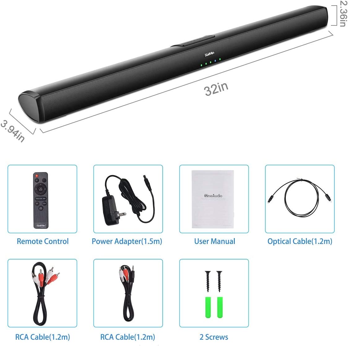 Saiyin Sound Bars for TV, Wired and Wireless Bluetooth 5.0 TV Stereo Speakers Soundbar 32’’ Home Theater Surround Sound System Optical/Coaxial/RCA Connection, Wall Mountable
