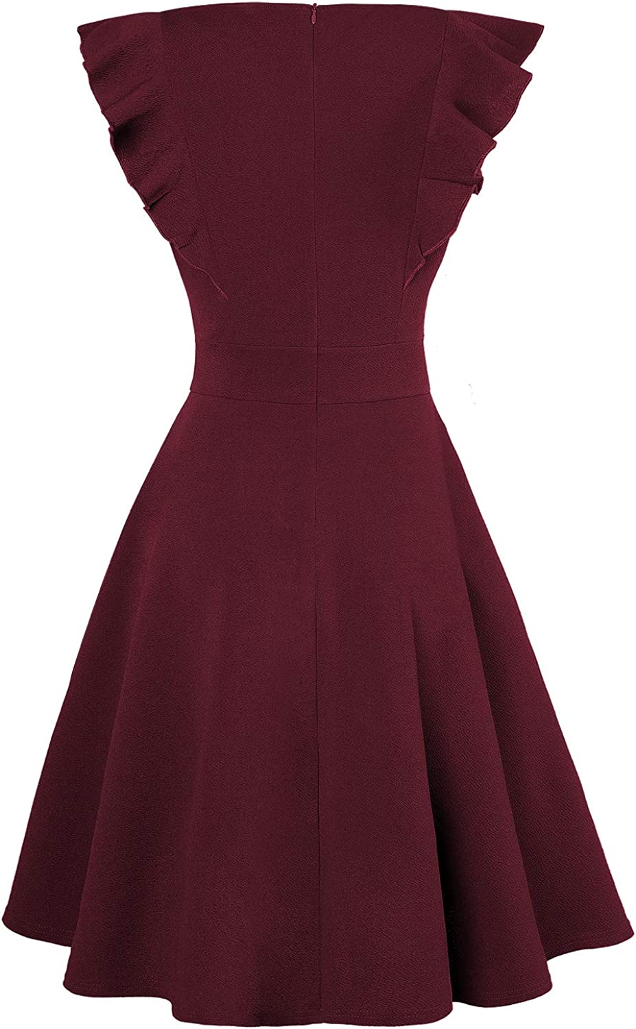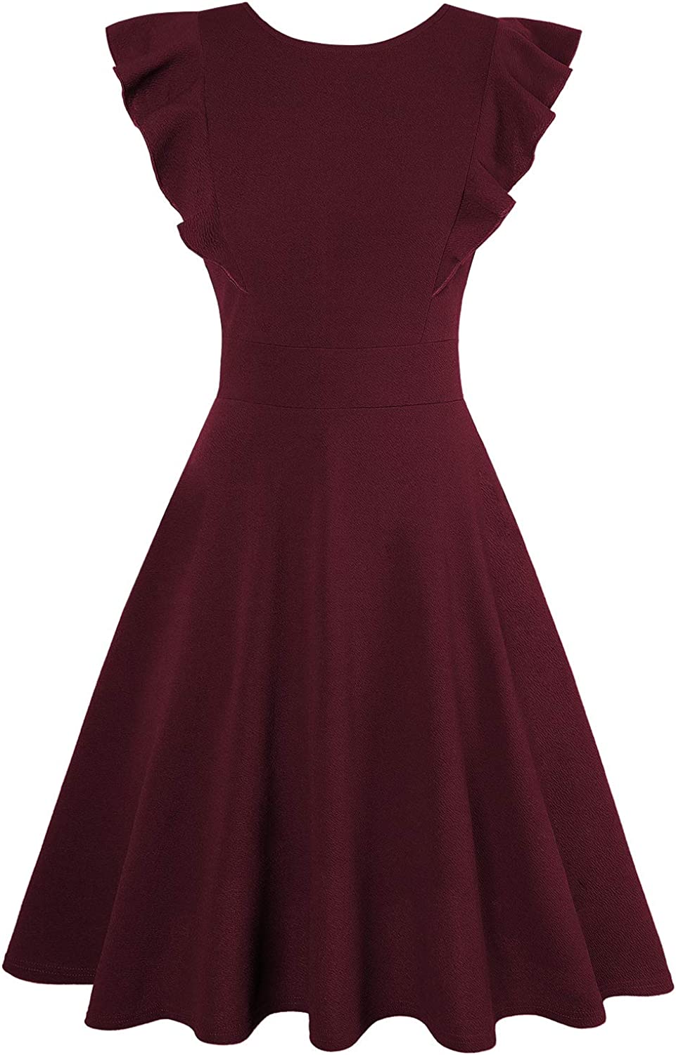 FLATTERING RUFFLE SLEEVES : The sexy flutter sleeves add some pizzazz and not tight around your arms. Plus there is extra fabric that covers the space between your arm and the ruffle, this makes the dress very classy.¡¾WARM TIPS¡¿This size of vintage dress is smaller, to ensure your experience, pls order one size up.Thank you!