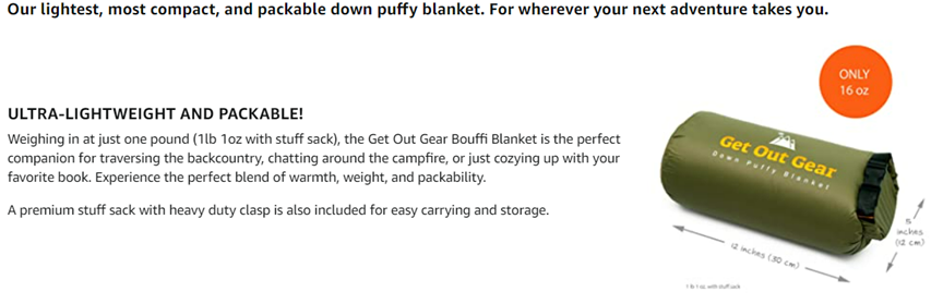 Get Out Gear Down Camping Blanket - Puffy, Packable, Lightweight and Warm | Ideal for Outdoors, Travel, Stadium, Festivals, Beach, Hammock | 650 Fill Power Water-Resistant Backpacking Quilt