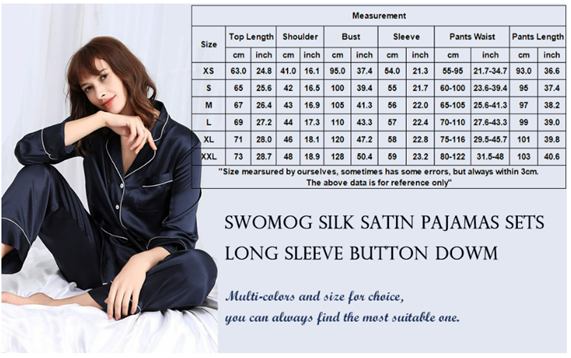 Materials: This lightweight pajama set is made of lightweigh silk satin, soft,breathable and skin-friendly, help you have a sound sleep.