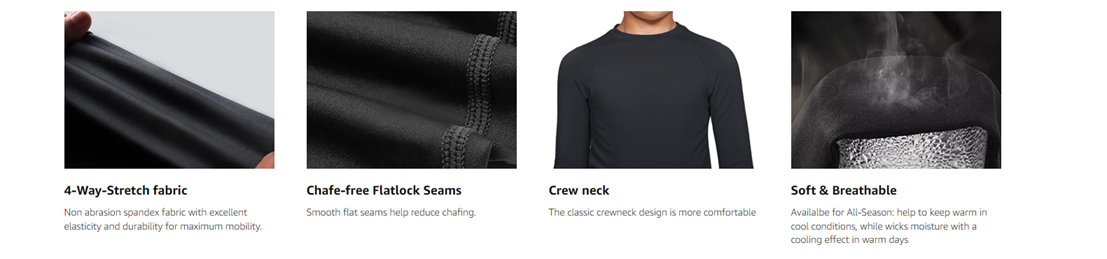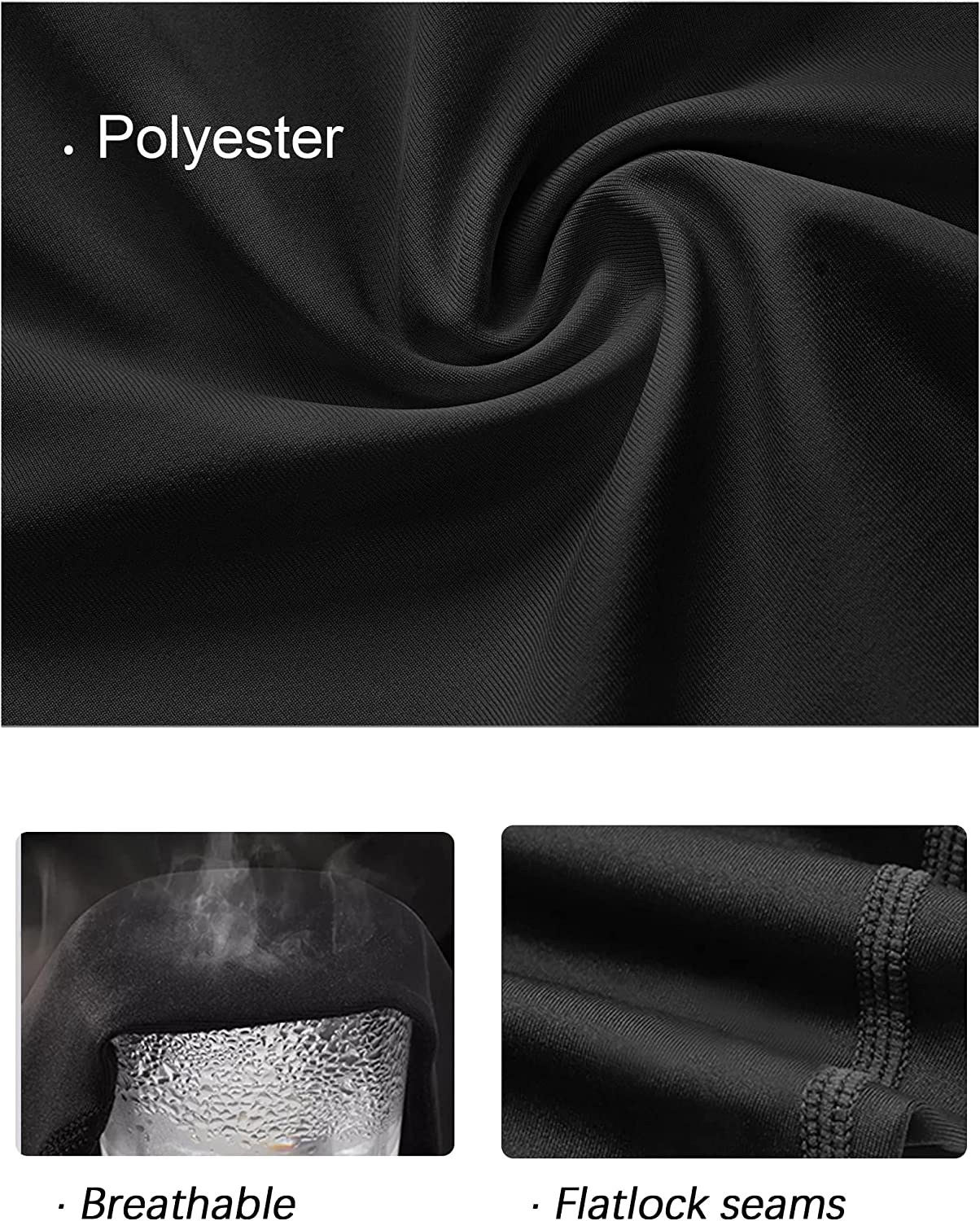 • Smooth flat seams help reduce chafing, while the durability is great. Crew neck design, easier to put the shirt one.