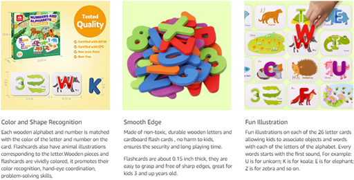 - 【Safety & Environmental】ABC Flash Cards are BPA free and nontoxic. Wooden blocks are perfectly smooth and sand down, no weird smell. Alphabet Flashcards Coated with a matte finish waterproof material on both side and friendly to be grasped.