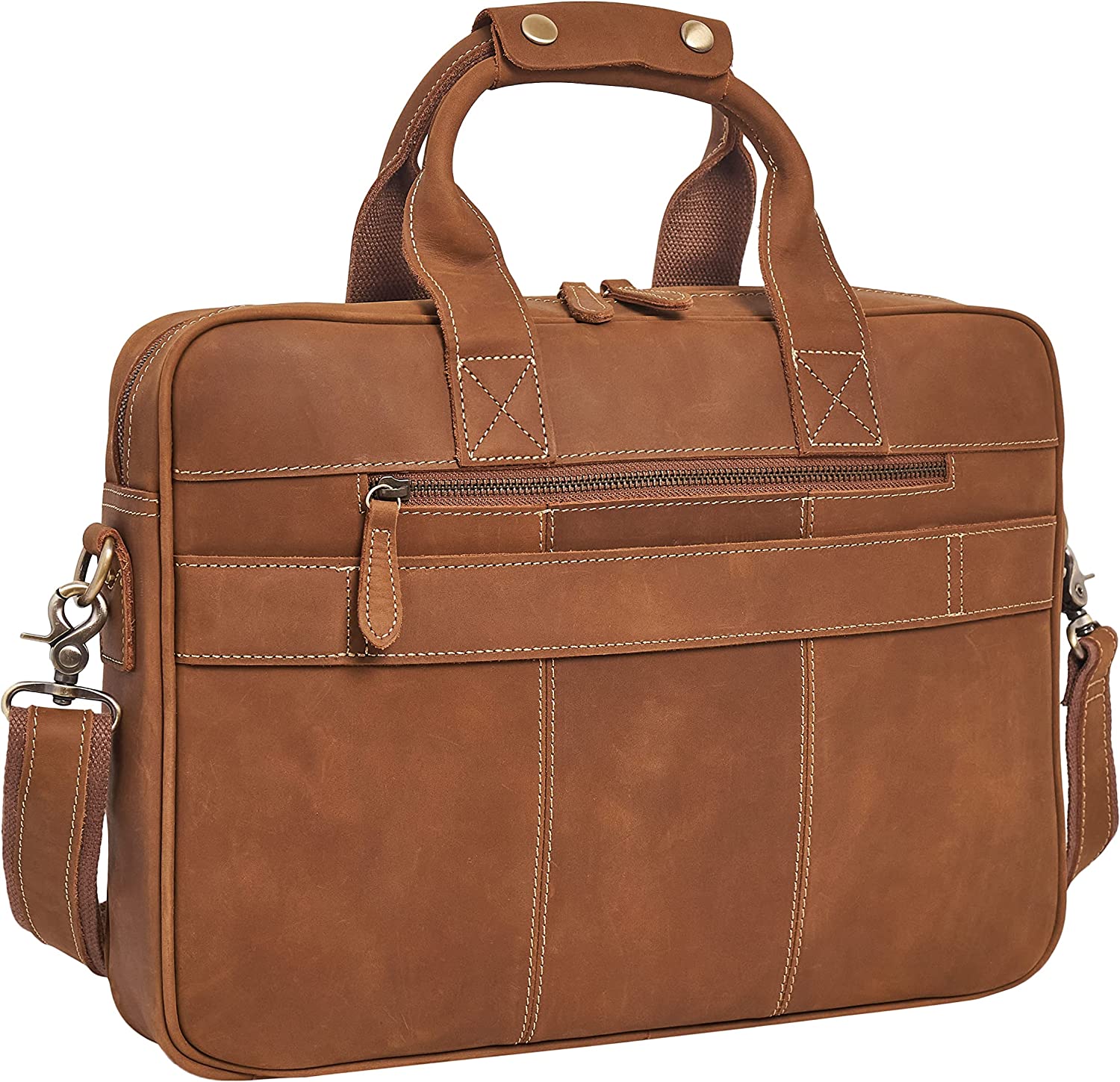 QUALITY CRAFTSMANSHIP - The executive leather briefcase for men is constructed with fine materials and expert craftsmanship. YKK zippers, solid antique brass hardware, precision stitching with heavy bonded thread, and a superb upgraded internal lining design. An office bag for men that will withstand many years of commuting.
